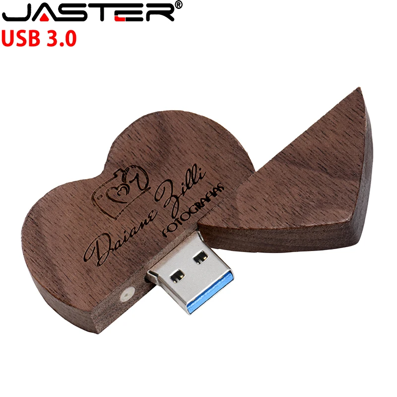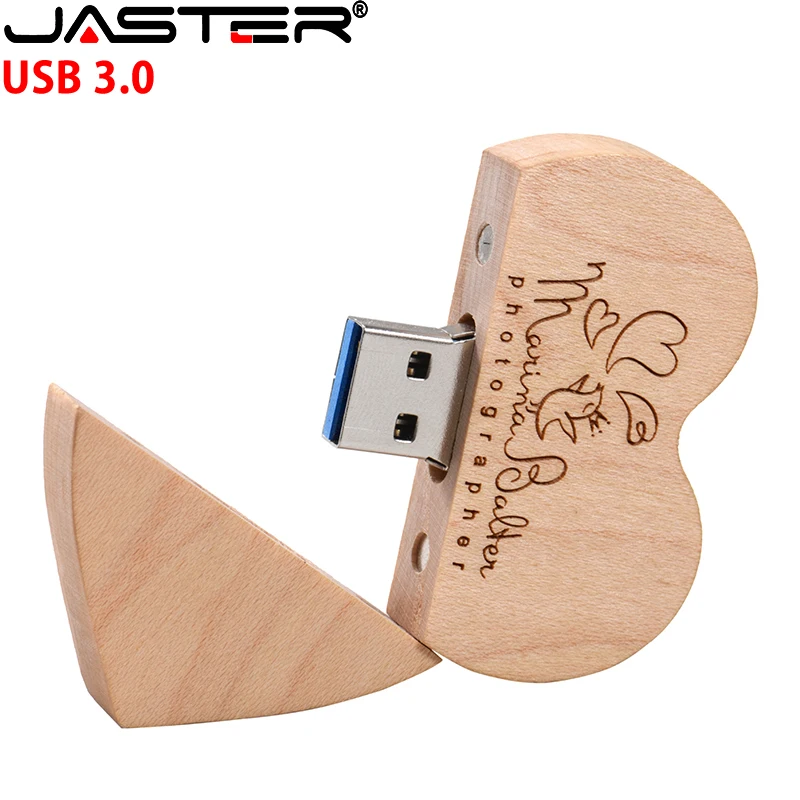 Флэш-накопитель JASTER в стиле флэш-памяти в виде сердца из дерева 128 USB 4 ГБ 8 ГБ 16 ГБ 32 ГБ 64 ГБ с брелоком свадебный подарок фотография