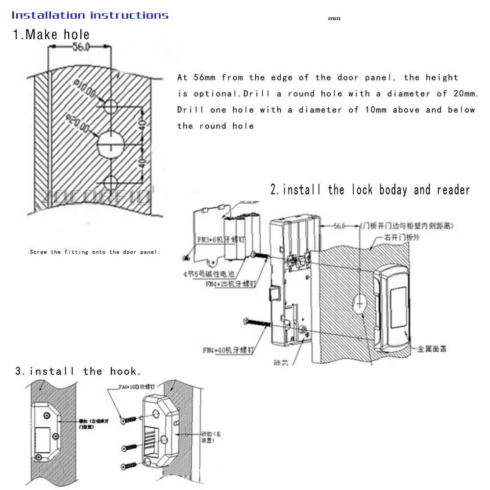 Метод настройки:(1): Инициализация:После установки аккумулятора, удерживайте кнопку инициализации в течение 3 секунд, зуммер «Звуковой сигнал» один длинный звуковой сигнал, отпустите кнопку, зуммер «Звуковой сигнал» каждые 1 секунду, введен «режим одиночной карты». Звук «звуковой сигнал» не останавливается. Затем нажмите кнопку «Инициализация», дважды нажимайте на кнопку «звуковой сигнал» каждые 1 секунду, введя режим двойной карты.(2) Установите карту управления:Установите режим одиночной или двойной карты на панели, чтобы прочитать гравировку руки с тремя словами карты управления» (или карты брелока), звуковой сигнал с длинным звуком, сказал, что первая карта управления зачитывается в другую карту управления, Каждый раз, когда звуковой сигнал сопровождается звуковым сигналом, длинный звуковой сигнал указывает на то, что карта уже установлена. В режиме одной или двойной карты карта управления может использоваться для открытия двери.(3) Установите карту гостя:Сказал, что карта установила хороший длинный звуковой сигнал, любая карта управления прочтет 3 под передней панелью, в то время как светофоры мигают, а затем читают в пронумерованную карту двери клиента (рука) карта для гостей. В режиме одной карты Гостевая карта может открыть дверь.(4) Установите карту официанта:Панель считывает любую карту управления, зеленый светильник быстро мигает, чтобы войти в состояние, чтобы установить карту официанта, выгравировать «карту официанта» вручную (или карточку ключа). Звуковой сигнал Buzzer один длинный звуковой сигнал указывает, что карта была установлена на карту официанта, когда лампа не погасена, установив 13 последовательных карт официанта. Карта официанта не может открыть дверь.2: Меры предосторожности(1) управляющая карта подряд читает 6 раз, открывает дверь, в то же время удаляется карта управления, карта гостей и Карта официанта. Стало состояние инициализации. Затем прочитайте первые две карты и карту управления.(2) Если шкаф блокирует гостевую карту или плохо, когда вам нужно настроить другую карту гостя, С любой картой управления на панели на тонале три раза быстро мигает светофоры. В это время можно прочитать еще одну гость. (См. Набор гостевых карт) и предыдущая Гостевая карта удалена.(3) механический ключ и внешний источник питания: Снимите переднюю индукционную бленду, доступный внешний источник питания. Снимите панель имеющегося механического ключа.