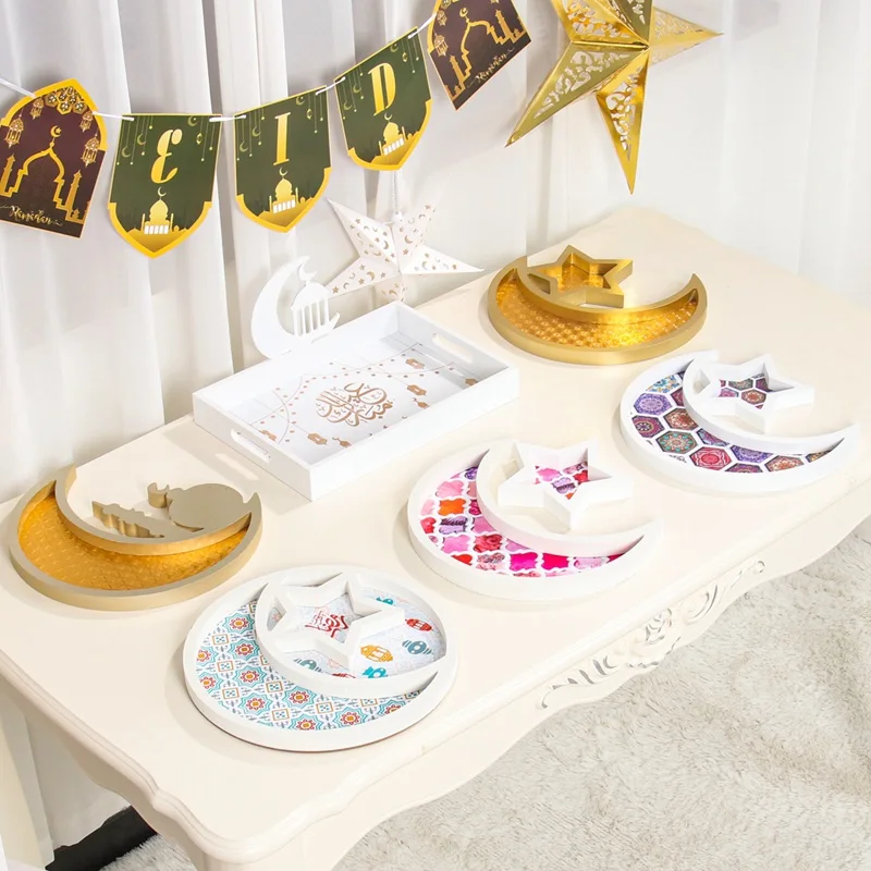 QIFU DIY ИД деревянный десертный поднос ИД Мубарак Декор для дома Рамадан Декор Подвески исламский мусульманский декор для вечеринки Ид Аль Адха