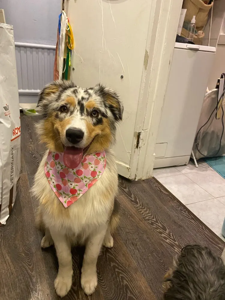 Не очень хороший размер, но Товар хорошего качества, очень красивый рисунок, красивые цвета, к сожалению, шарф слишком большой для моего Джека русселя (я заказал размер S!) слишком плохо, потому что я не могу положить его, потому что слишком большой!
