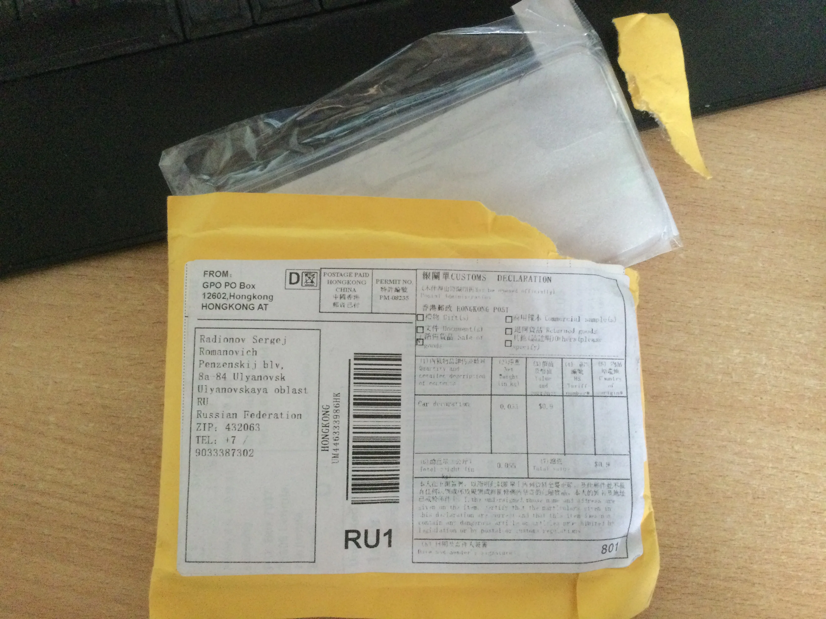 Спасибо большое. Посылка пришла. Всё хорошо.
