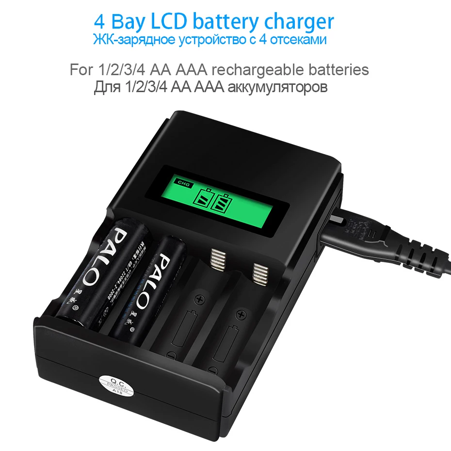 Оптовая продажа, зарядное устройство PALO с 4 слотами и ЖК-дисплеем, умное зарядное устройство для никель-металлогидридных аккумуляторов AAAAA