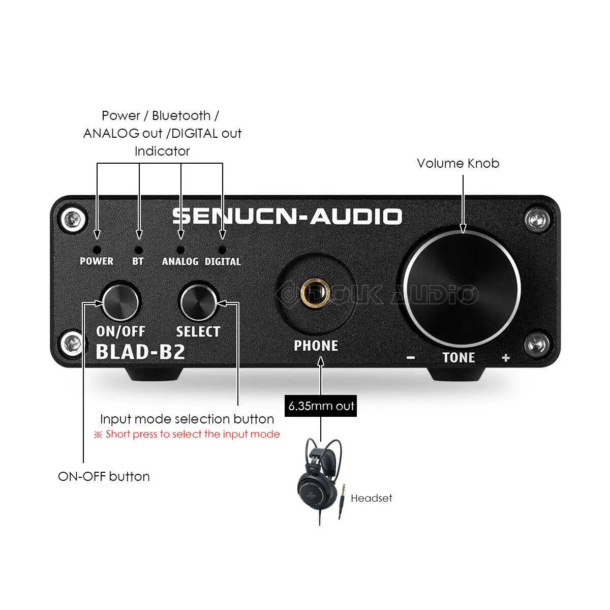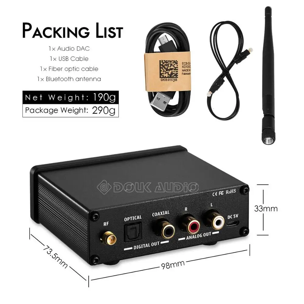 Nobsound HiFi Bluetooth 5,0 аудио декодер мини стерео усилитель для наушников DAC коаксиальныйоптический черныйсеребристый