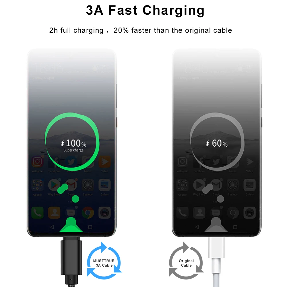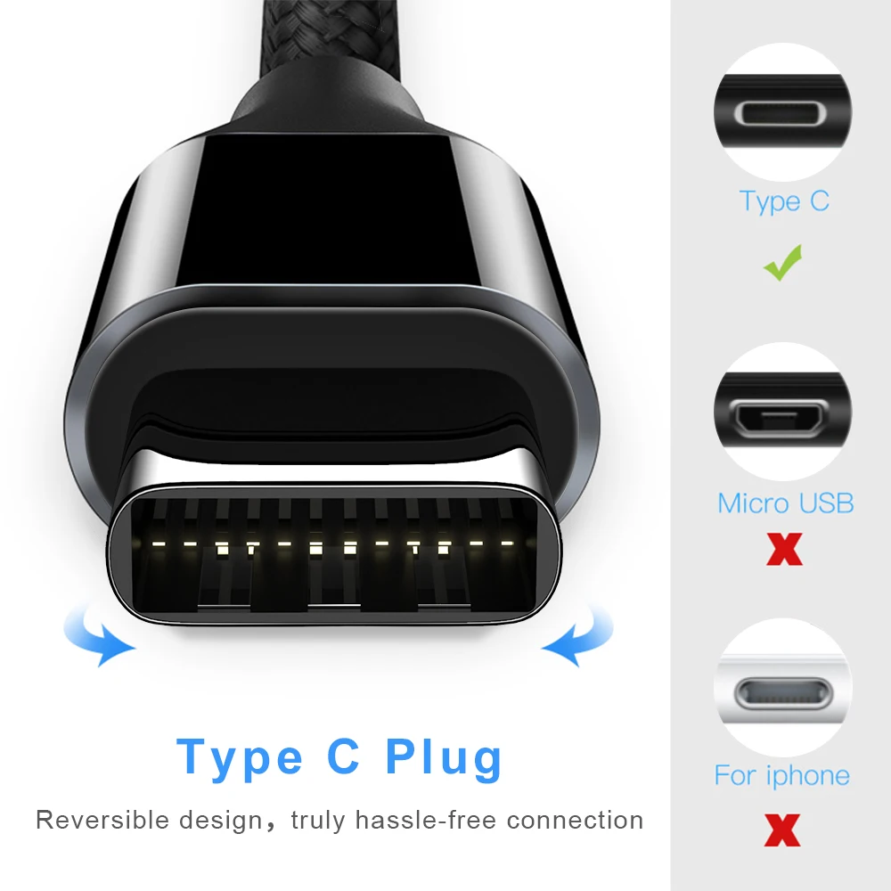 Кабель USB Type-C для Samsung S20, S10, S9, S8 Plus, Huawei P40, P3...
