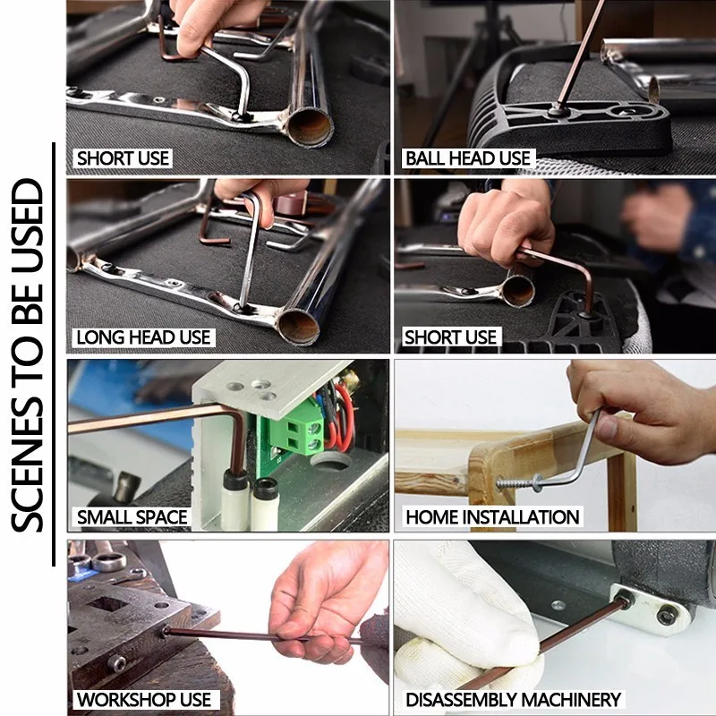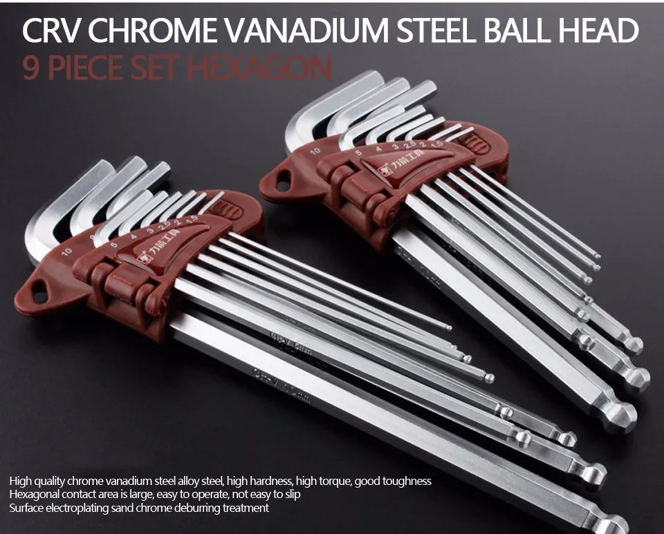 9 шт. 1,5 мм-10 мм шестигранник Аллен ключ набор инструментов Матовый хромированный шаровой гаечный ключ Набор отверток Набор инструментов Herramientas
