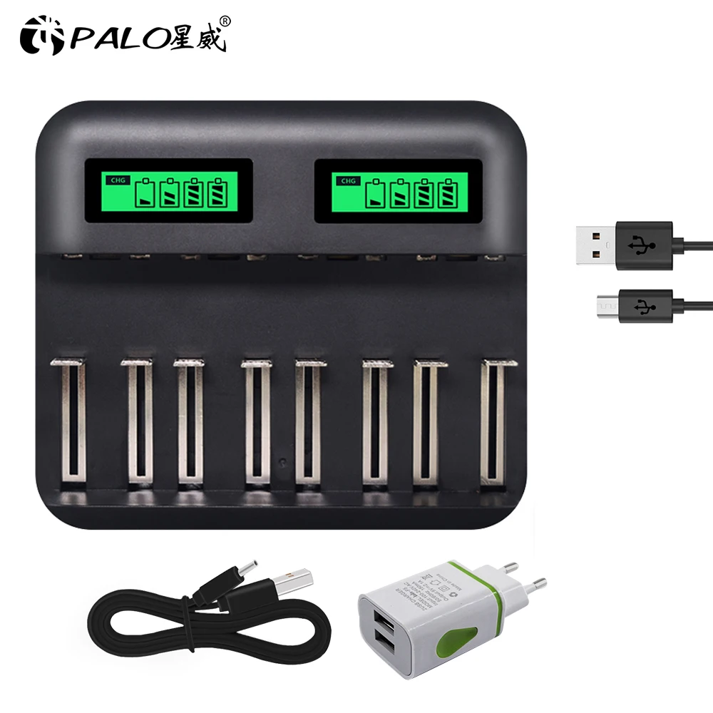PALO 8 слотов Смарт ЖК-дисплей AA зарядное устройство для AA AAA SC...
