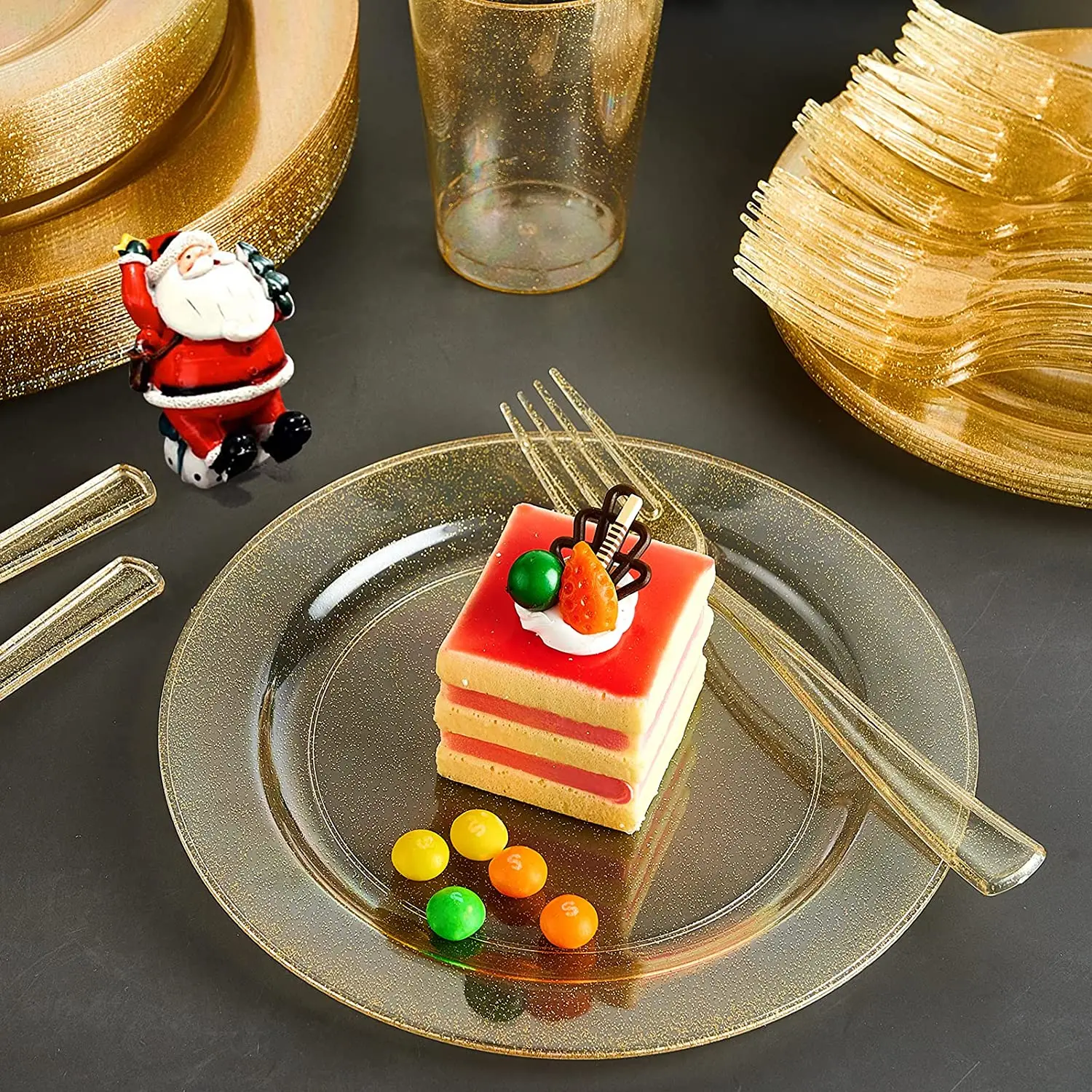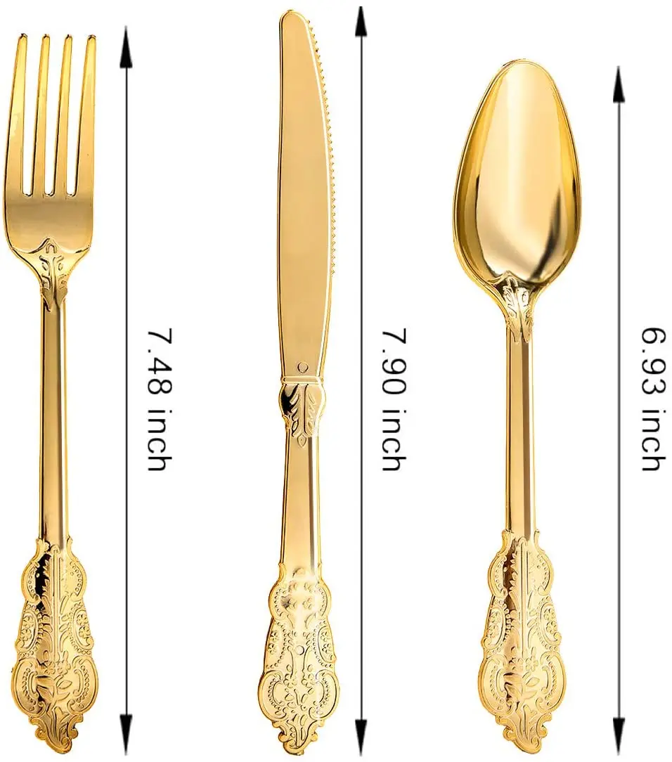 Высокое Качество: 100% пищевой, нетоксичный, без BPA пластик! Эти золотые столовые приборы безопасны для вас и ваших гостей. Прочные, прочные, сверхпрочные столовые приборы гарантируют, что не поцарапаются и не ломаются.