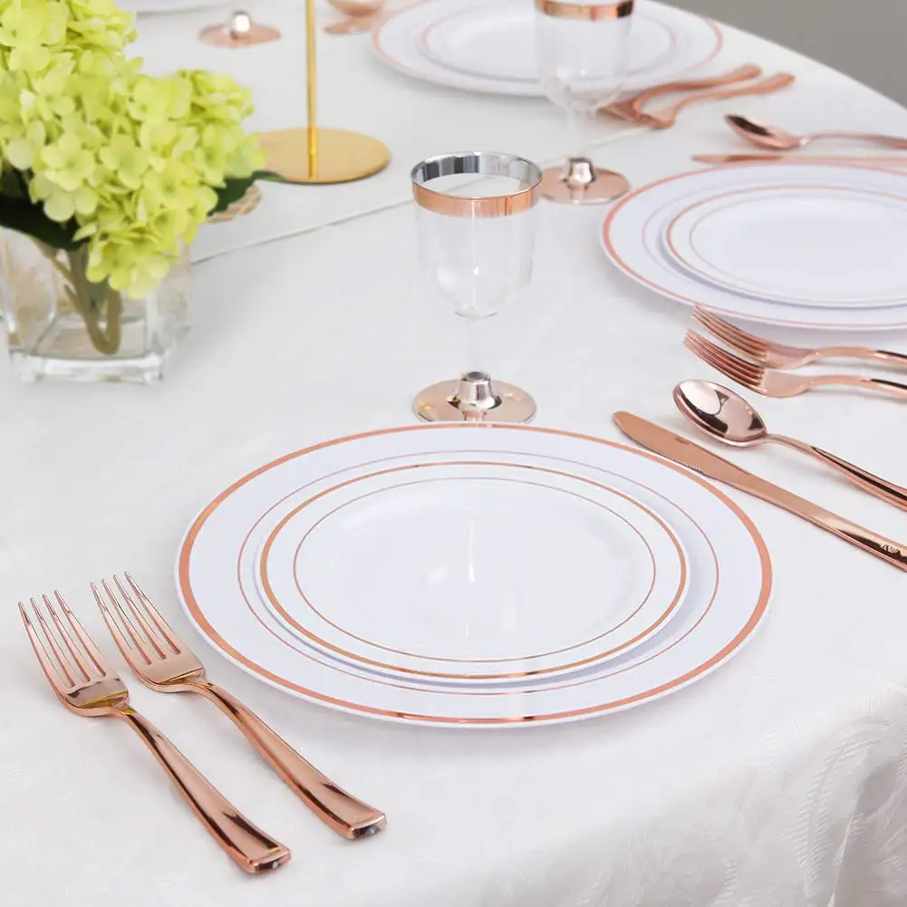 75 шт Gold набор одноразовых столовых приборов-одноразовые Пластик розовое золото столовые приборы-включает в себя 25 вилки, 25, ложки, 25 ножи