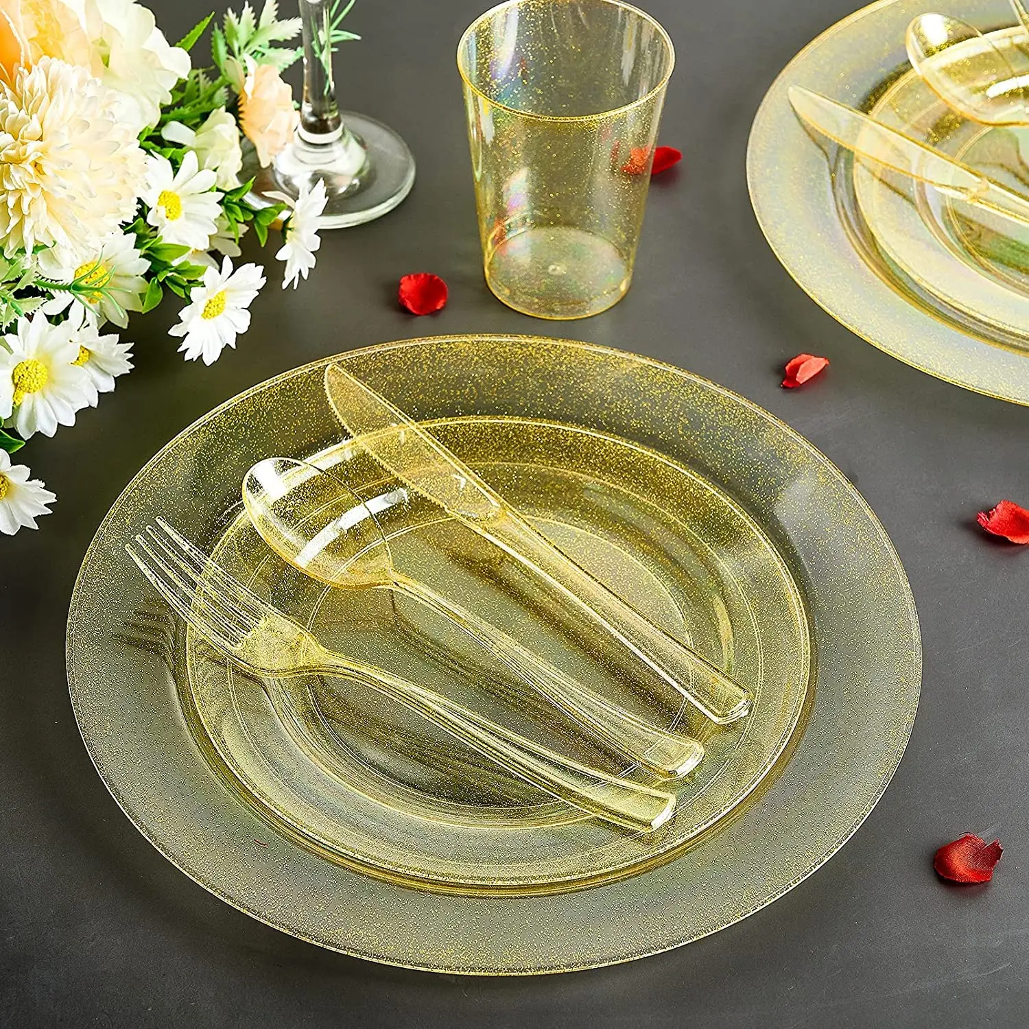 Элегантный дизайн: элегантный, нежный, блестящий, выглядит как столовые приборы из настоящего золота, идеально подходит для всех случаев, свадеб, юбилея и воссоединения семьи.