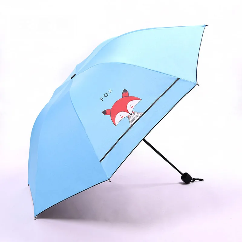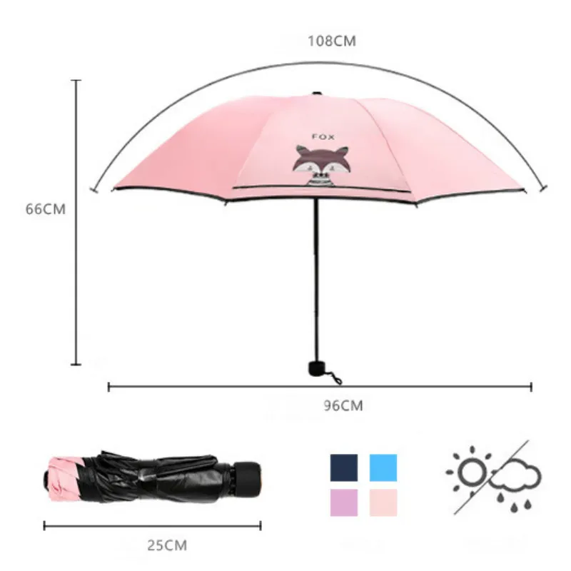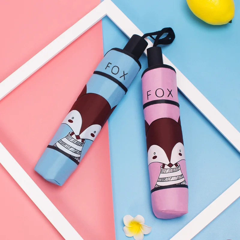 Креативный складной мультяшный зонт для детей, милый маленький Зонт с лисой, Солнцезащитный черный зонт с покрытием, детский подарок, зонтик для девочек
