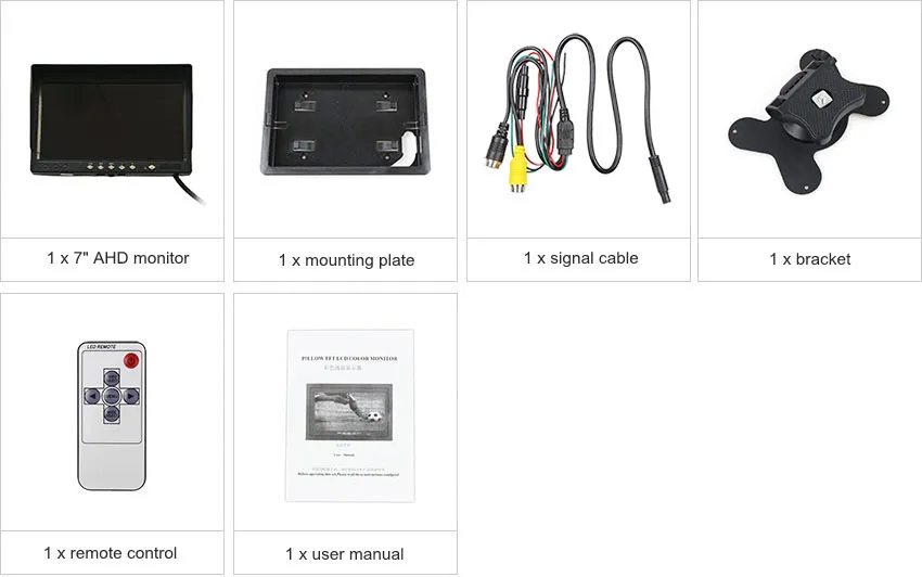 Экран AHD 7 "с разрешением 1024*600, сУстановка кронштейна. Взять с собой два 4-контактный видео вход переменного тока, может работать сКамеры заднего вида AHDИКамеры наблюдения AHD.