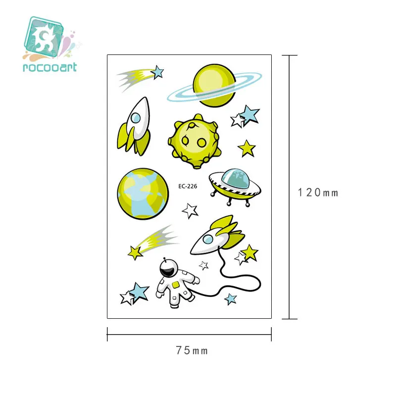 Временная татуировка Rocooart, мультяшная, космическая, космонавты, планета, татуировка, наклейка, переводная татуировка для мальчиков и девочек