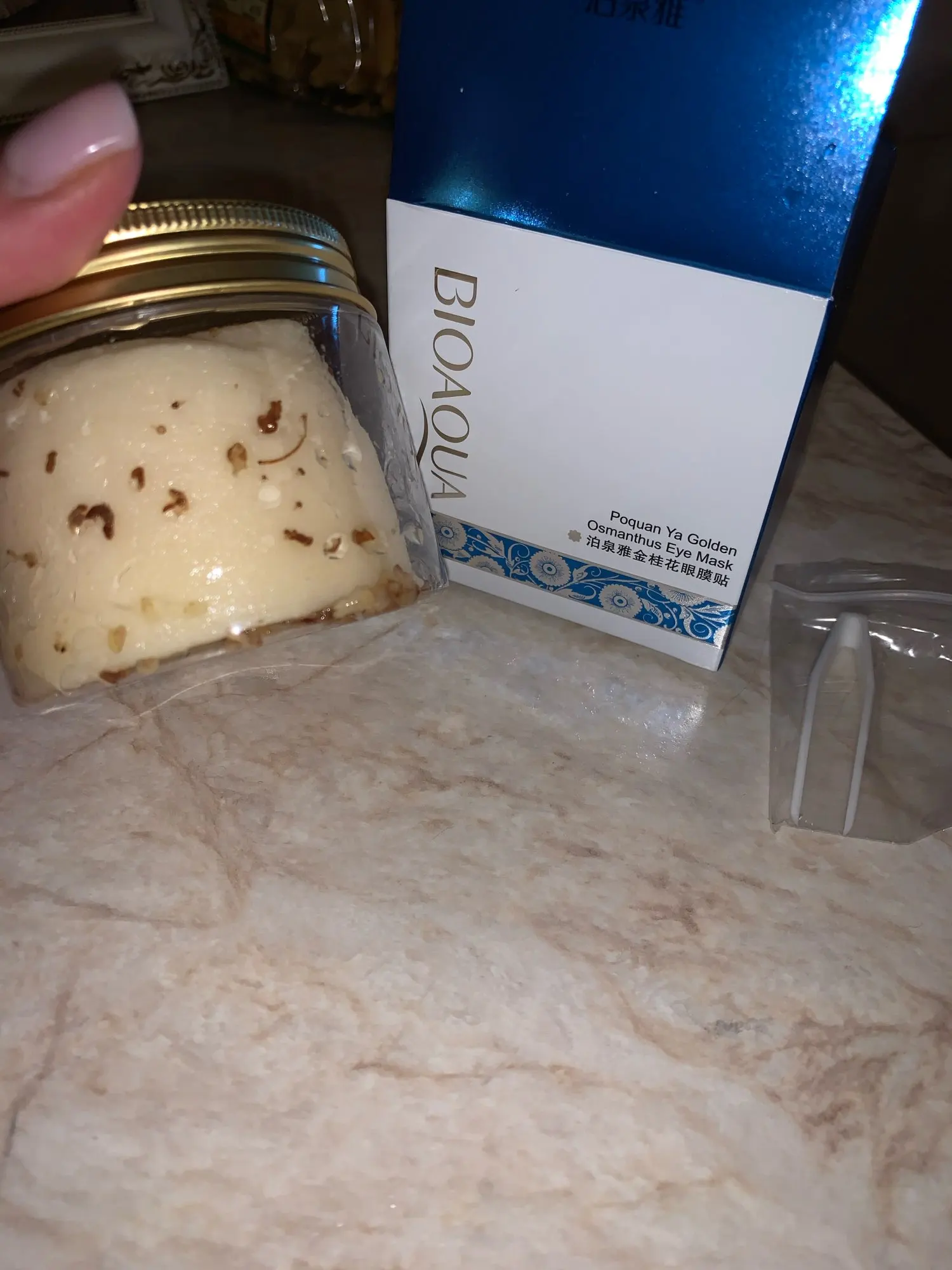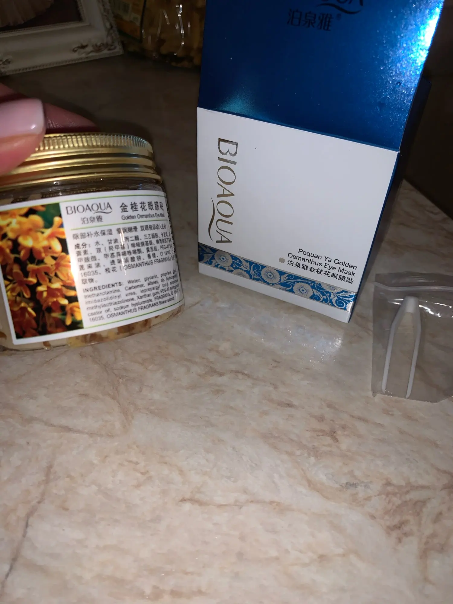 tardó un poco ... pero es producto está bien, la mascarilla deja la piel muy suave y es como se describe y los parches de los ojos huelen muy bien , tiene unas florecitas con un aceite ,deja el contorno de los ojos suave e hidratado. me gusto .