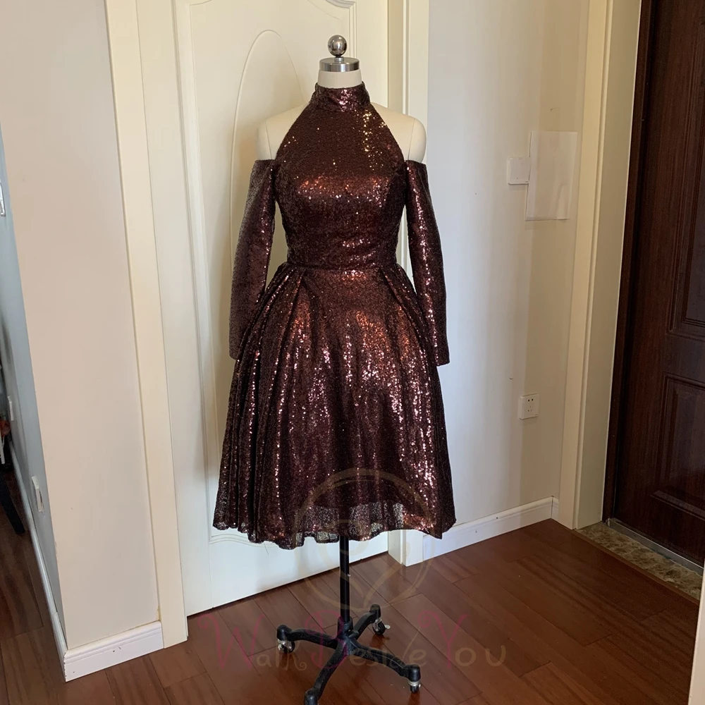 Серебряное бальное платье с высокой горловиной, Короткие коктейльны...