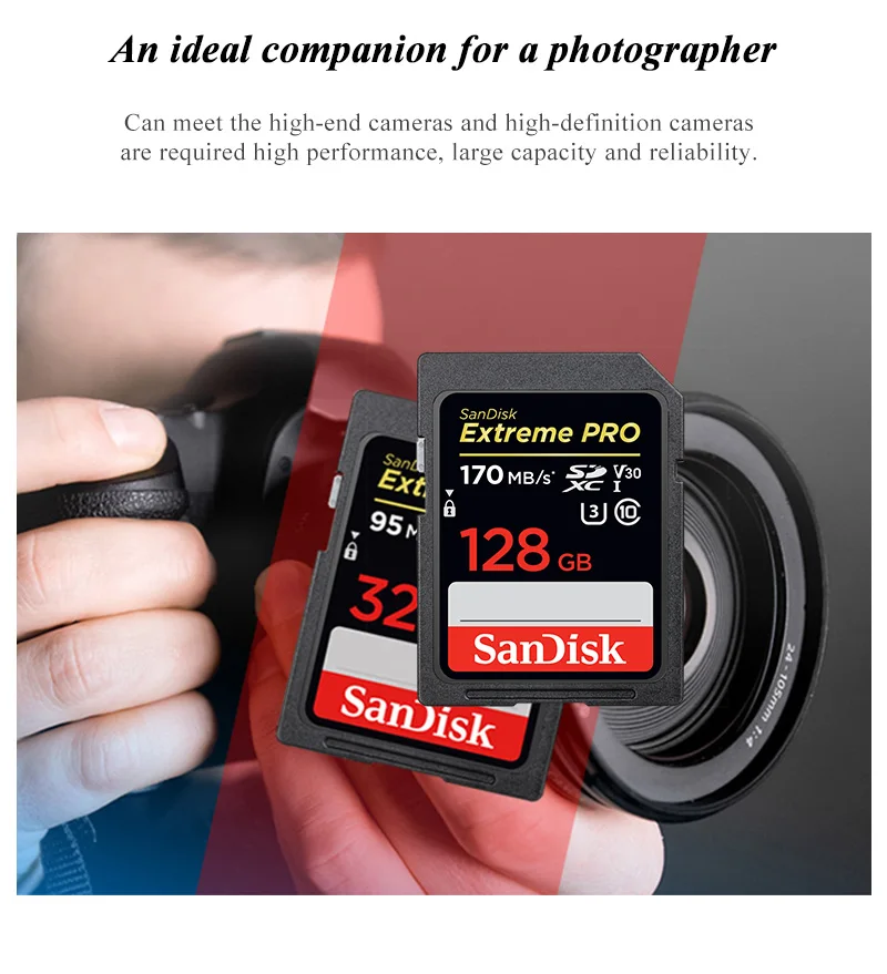 Карта памяти Sandisk Extreme Pro, 100% ГБ, 256 ГБ, 64 ГБ, 128, 170,...
