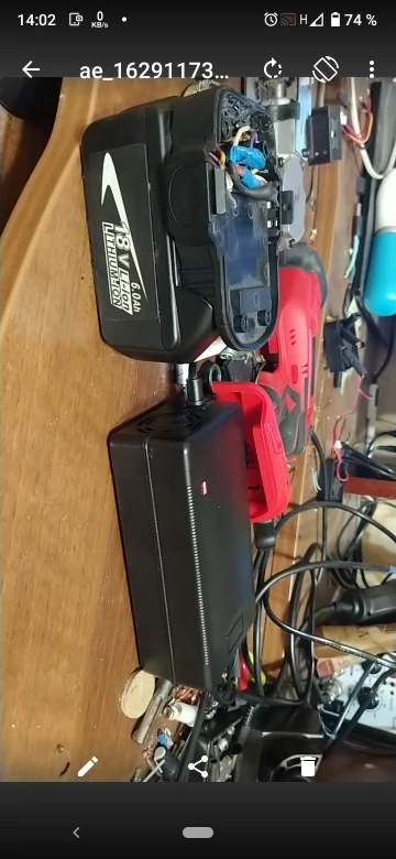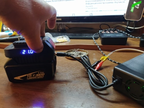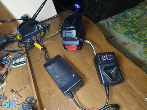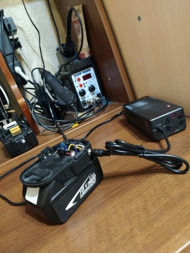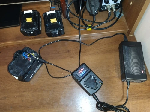 Это третье зарядное заказал, одно на работу забрал, одно пришлось продать вместе с 2 аккумуляторами и ушм. По этому заказал ещё себе-так как пользуюсь примерно год, заряжаю часто аккумуляторы Makita и Bosch 18v через переходники, на фото видно два переходника один одет на аккумулятор Bosch 18v и второй сверху, нп важно, важно что зарядное лучшее что мне попадалоь! я разрядил аккумулятор до 18v и показывает зарядка 5 ампер, а если аккумулятор разрядить до 16 вольт то показывает до 7 ампер. короче я доволен!!!