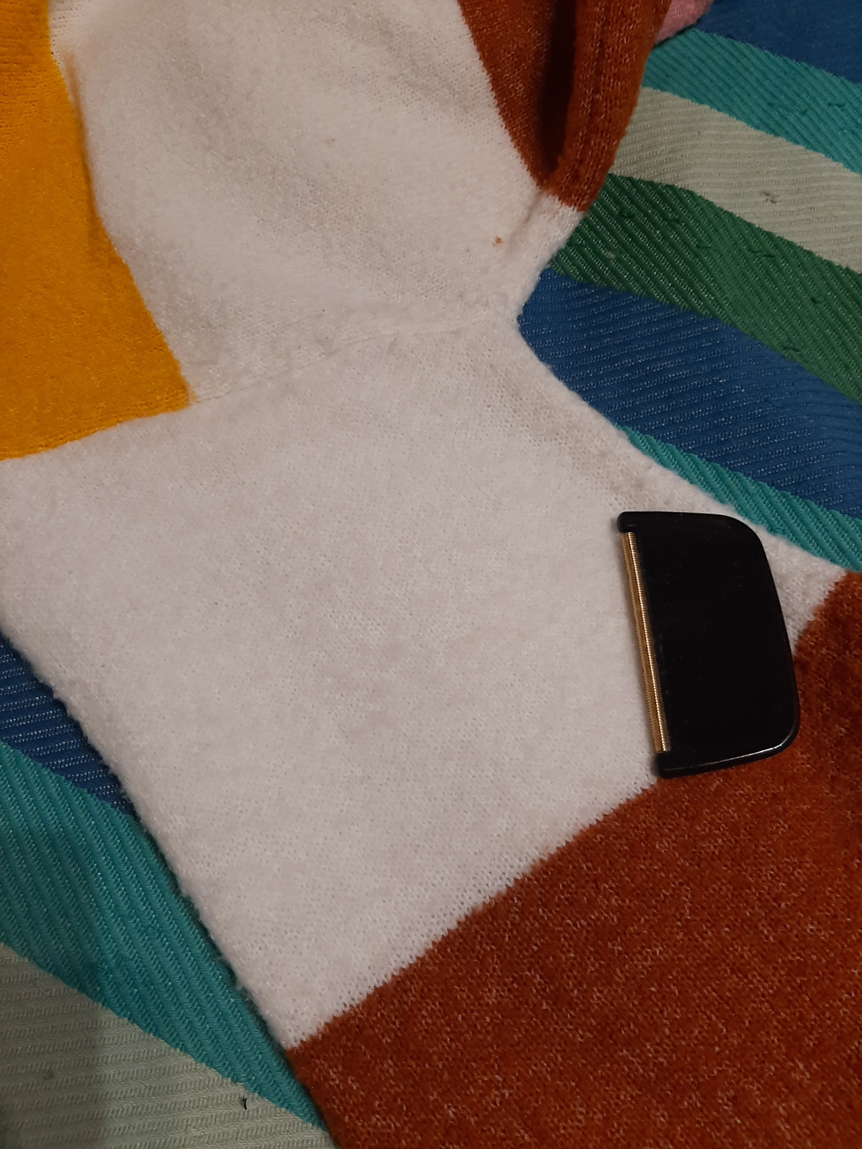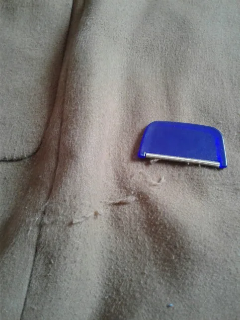 это не совсем тот прибор, который я хотела, так как эффект не тот. Прибор убирая катышки, расчесывает нити, делая их пушистыми. То есть делает основу будущим быстрообразующимся катышкам. Увы.
