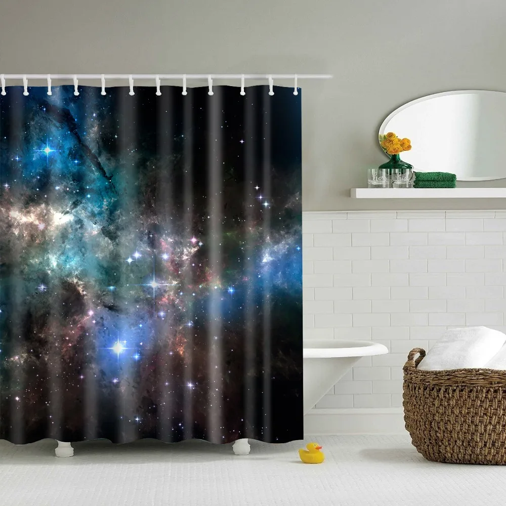 Занавеска для душа из полиэстера, с принтом ночного неба и звезд, водонепроницаемая, 180 х180 см