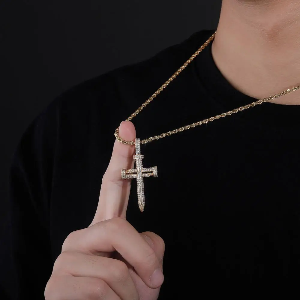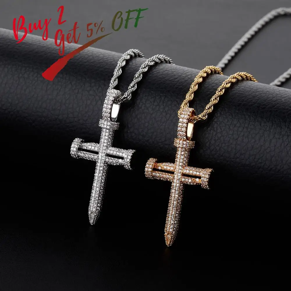 Цепочка Мужскаяженская, с кулоном в виде креста, с фианитами AAA, в стиле хип-хоп, золотая, цвет серебра талисман