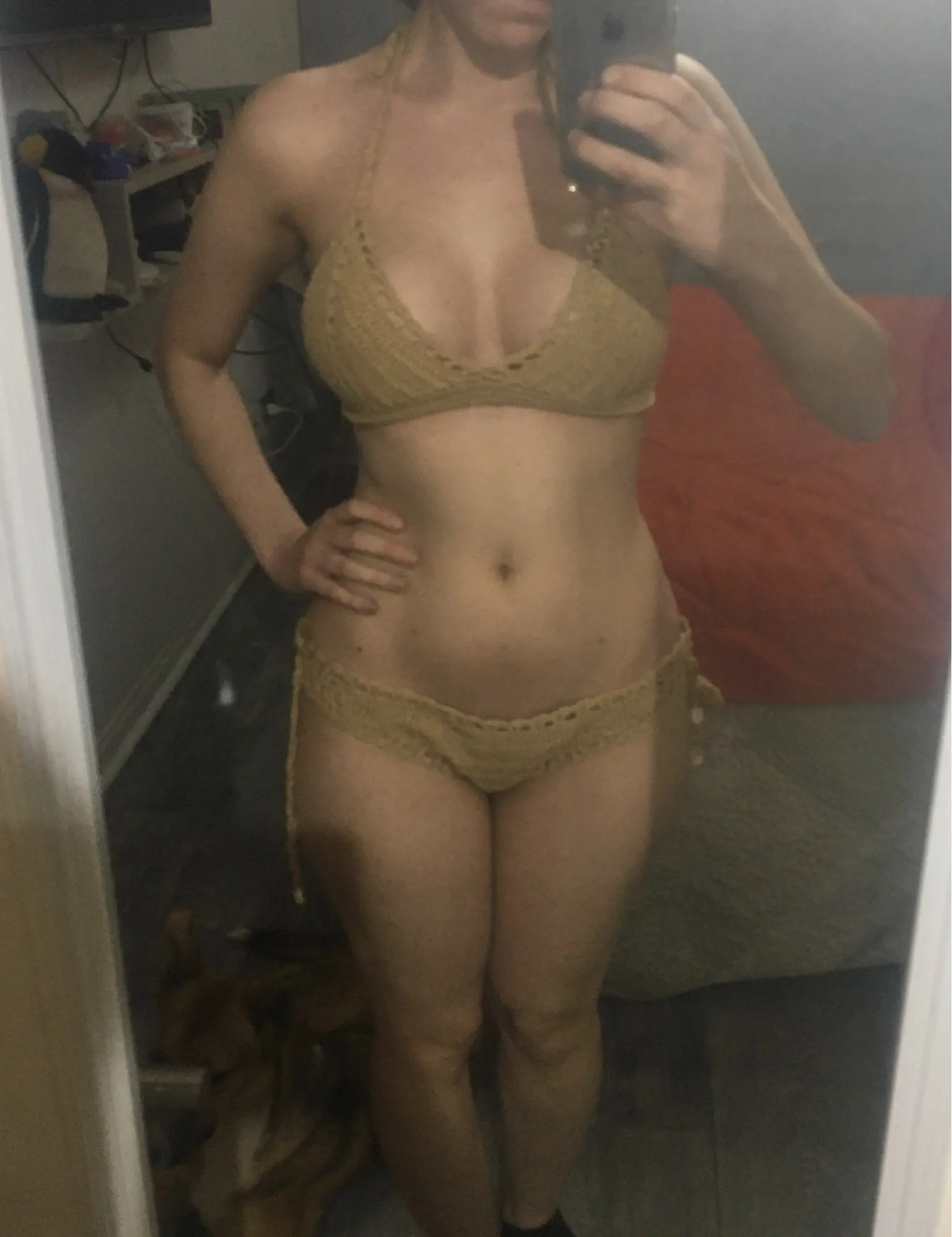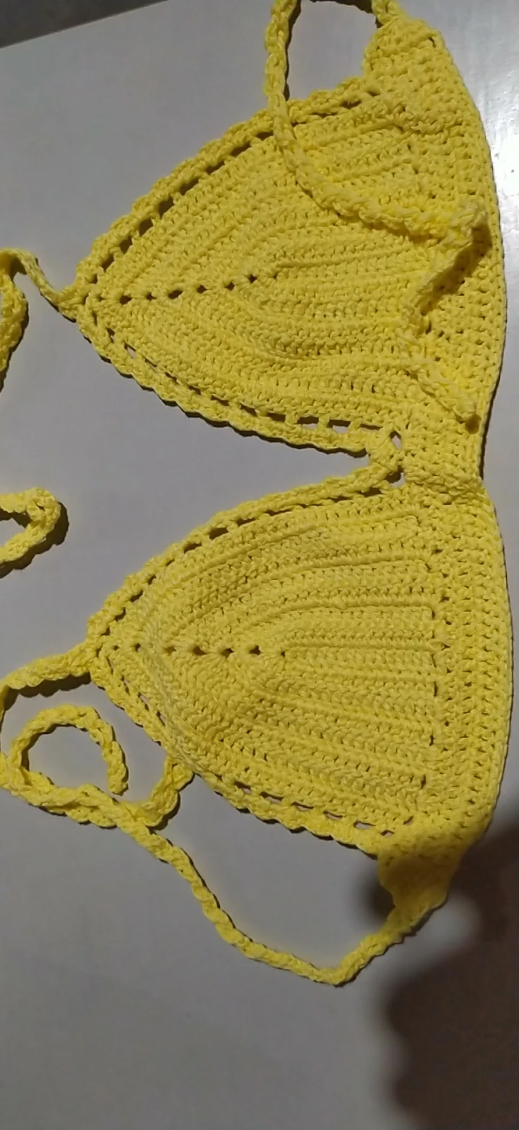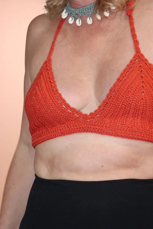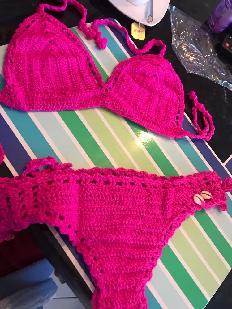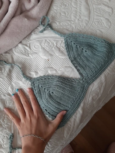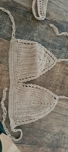 Заказала несколько разных вязанных. Этот верх не понравился. Придётся что то нашивать , тк все видно. И он на 75С то ли маловат, то ли просто для большой груди никак (только если силикон).