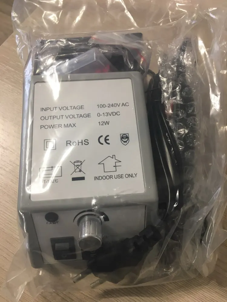 заказала 11.11, принес домой через месяц курьер. работает, лампочка горит, все вертится. ручка толстовата конечно, но привыкнуть можно. фрезы не очень. брала для домашнего пользования, полноценно ещё неиспробвыала. За такие деньги, я думаю, отлично!