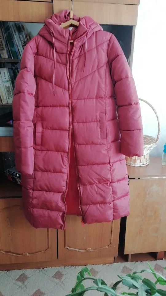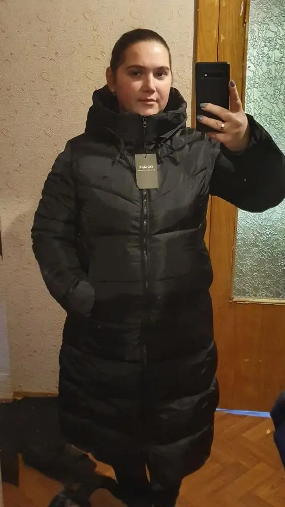 Итак девочки ,кто ищет курточку на свою большую попу и сомневается )..А отзывы все написаны туманно ..Так вот куртка огонь ОГ около 130,по бёдрам 135-140 около того я намеряла ... Но главное мои 130 ОБ,120 ОТ и 115 ОГ влезли неплохо,за счёт живота грудь не болтается,все окей..И плюс беременный животик там тоже уместился ..Куртка ,набита плотно ,на рост 173 до колена или чуть выше ,рукава вот совсем маленько короткие,даже можно сказать нормально .))За такие деньги вообще подарок судьбы, взяла на распродаже с купоном за 1650 ..Разве что молния хлипкая ..Но тут уж можно поменять если что .Кое где торчат ниточки,но не критично ,дыр не нашла. Капюшон немного хлипковат ,но под шапочку самое то .В общем довольная покупкой и что влезла со своей толстой попой .)Плюс небольшой подарок от продавца .