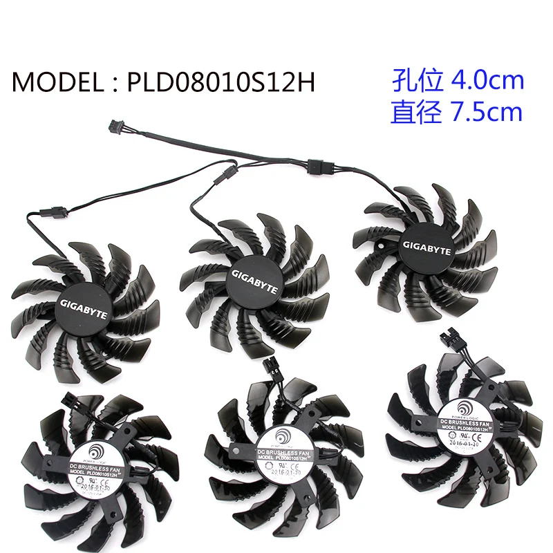 Вентилятор Охлаждения видеокарты T128010SM PLD08010S12H для Gigabyte GV-N970WF3OC-4GD GTX970, диаметр 7,5 см