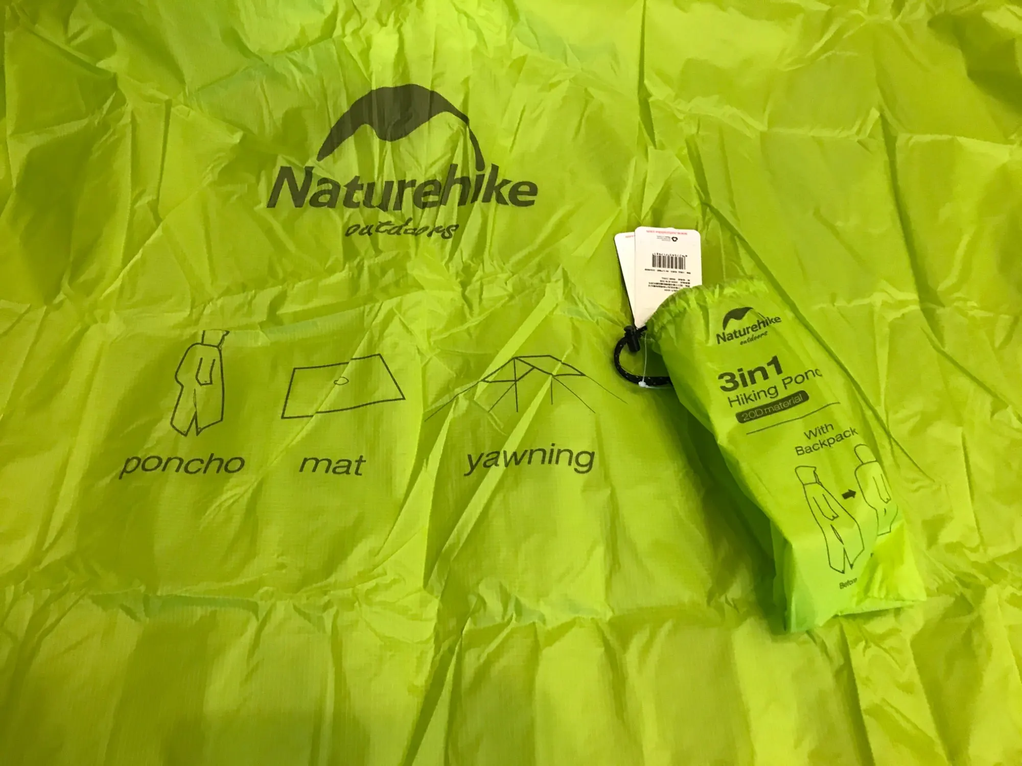 Легкий, компактный. ОГРОМНЫЙ плащ. Надо будет что-то придумать типа повязки на пояс, чтобы хоть как то уменьшить объем в районе тела. С другой стороны с моим 90 литровым рюкзаком может быть и нормально будет. А так все хорошо. качество отличное. Из нюансов - дико вонючий. Казалось бы сделан из такого же материала как палатка, но воняет люто. Пока проветривается :) Сбоку липучки, чтобы совсем не разлетался и ими же формируются типа рукавов.