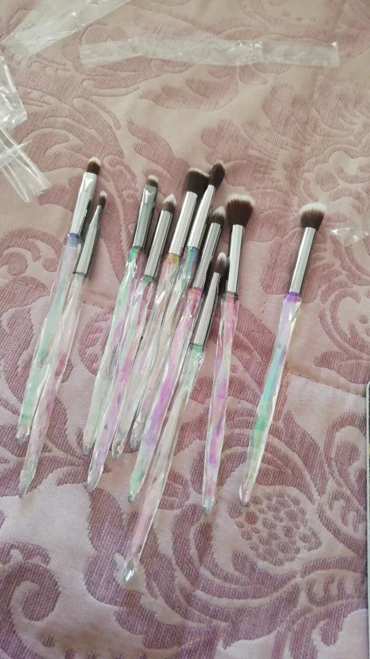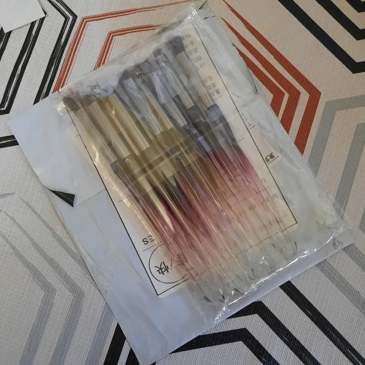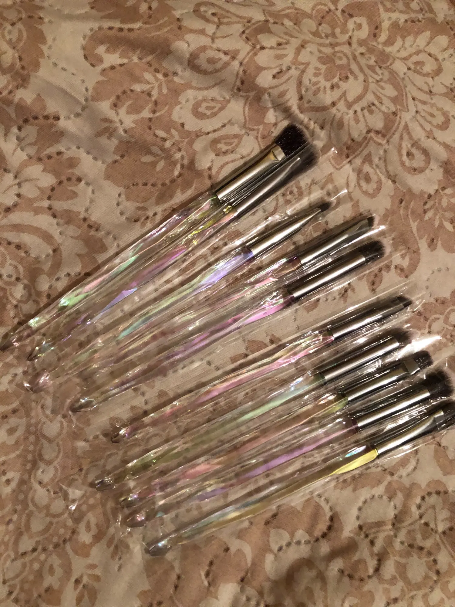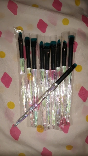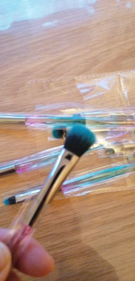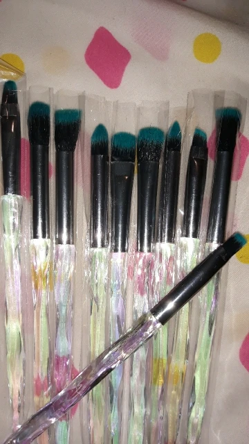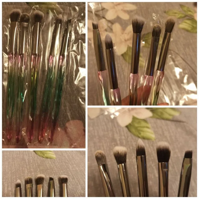 Доставка была немного медленной, не слишком большой вопрос. Щетинки мягкие, однако некоторые кисти имеют неровные щетинки. Не веер пушистых/смешанных кистей, так как они слишком мягкие и нежные, чтобы действительно смешивать, но маленькие Угловые кисти действительно хороши для нанесения точной подводки для глаз/теней для век.