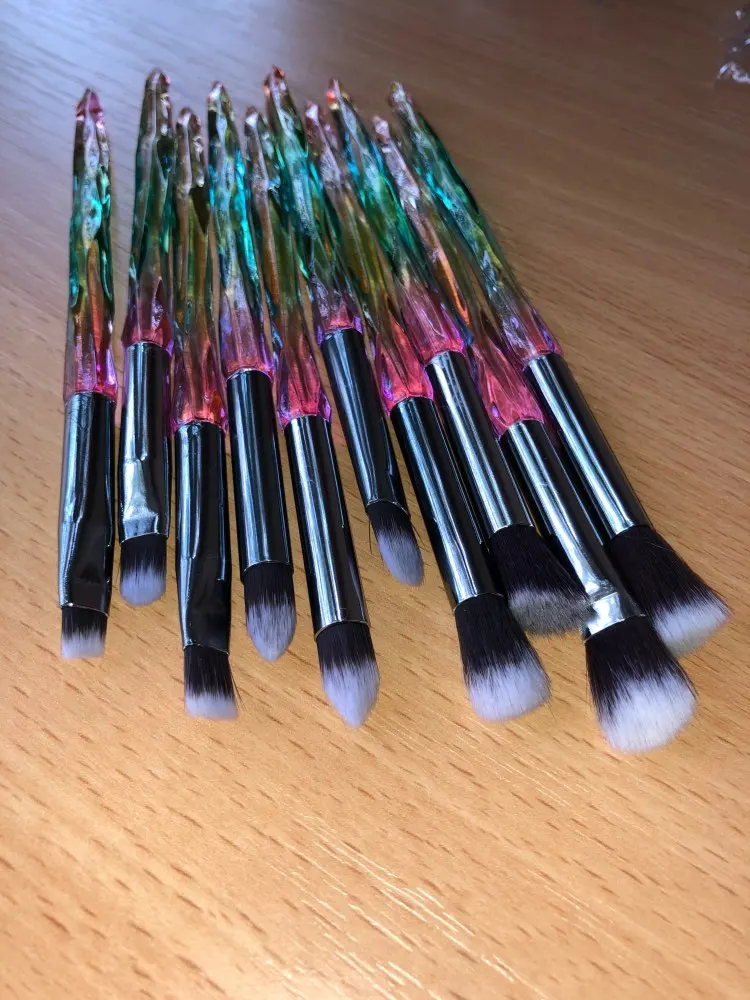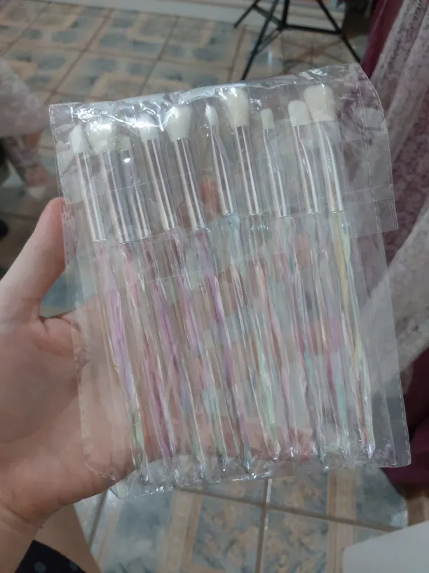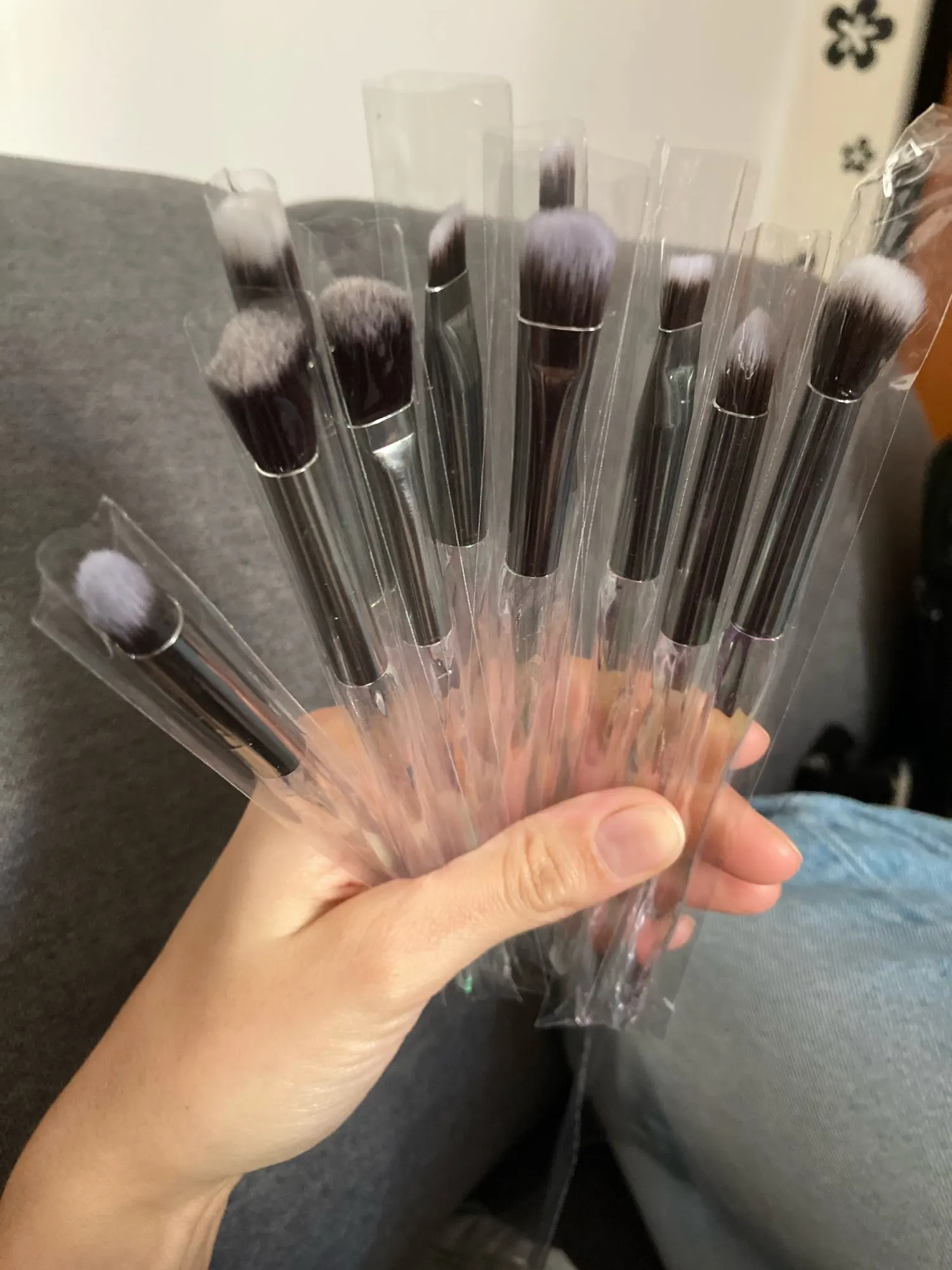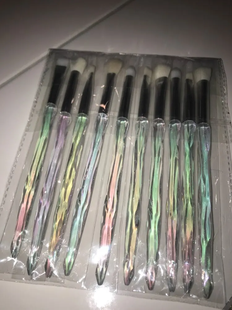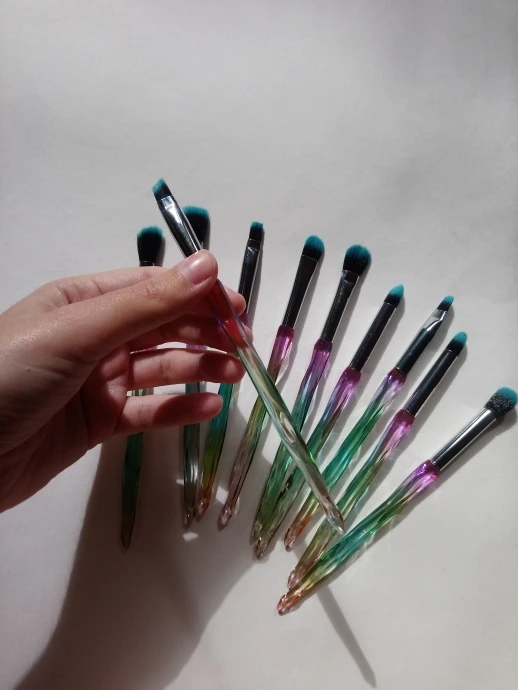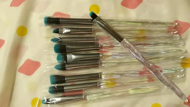 Доставка была немного медленной, не слишком большой вопрос. Щетинки мягкие, однако некоторые кисти имеют неровные щетинки. Не веер пушистых/смешанных кистей, так как они слишком мягкие и нежные, чтобы действительно смешивать, но маленькие Угловые кисти действительно хороши для нанесения точной подводки для глаз/теней для век.