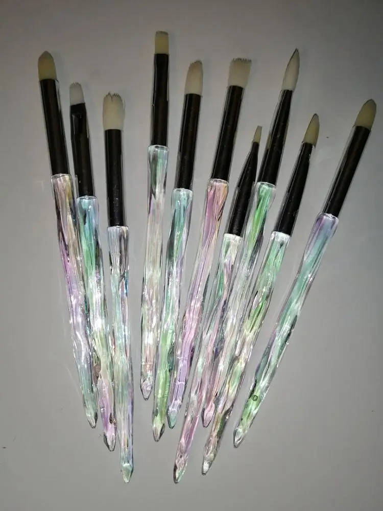 мелкий ворс, красивые и удобные ручки. хорошее дополнение к коллекции кистей за эту цену