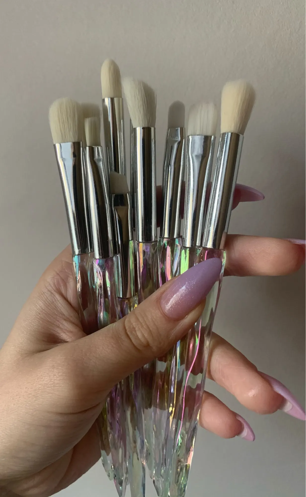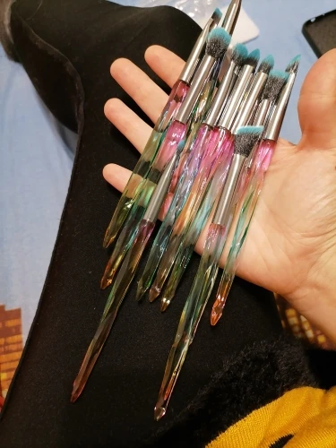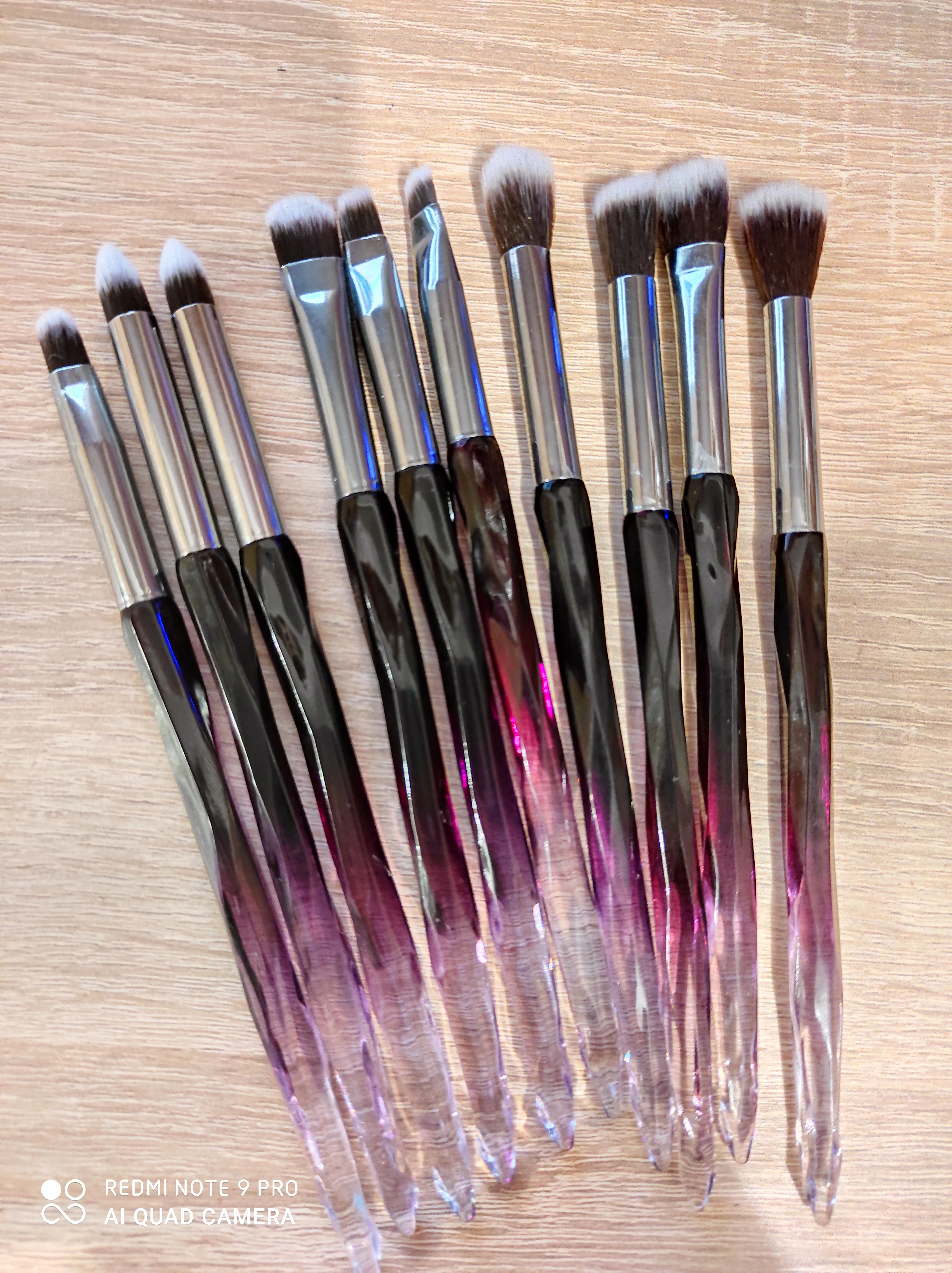 Кисти мне очень понравились! Очень хорошо набиты, есть абсолютно все кисти для макияжа глаз, дизайн нереальный! Прям очень хорошо Кстати, доставка очень быстрая.