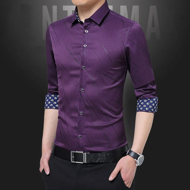 Мужская деловая рубашка, с длинным рукавом, приталенная, однотонная