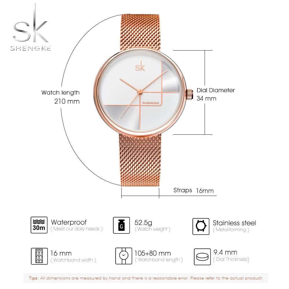Часы Shengke женские кварцевые, водонепроницаемые полностью розовые золотистые Роскошные с японским механизмом, с сетчатым ремешком из нержавеющей стали, Прямая поставка