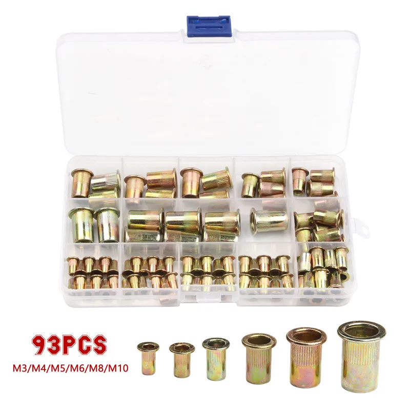 93 шт мульти размер углеродистая сталь заклепки гайки плоская голов...