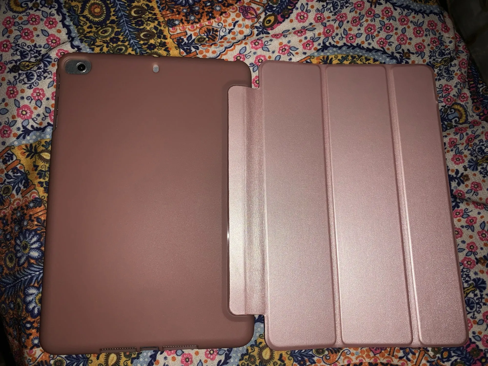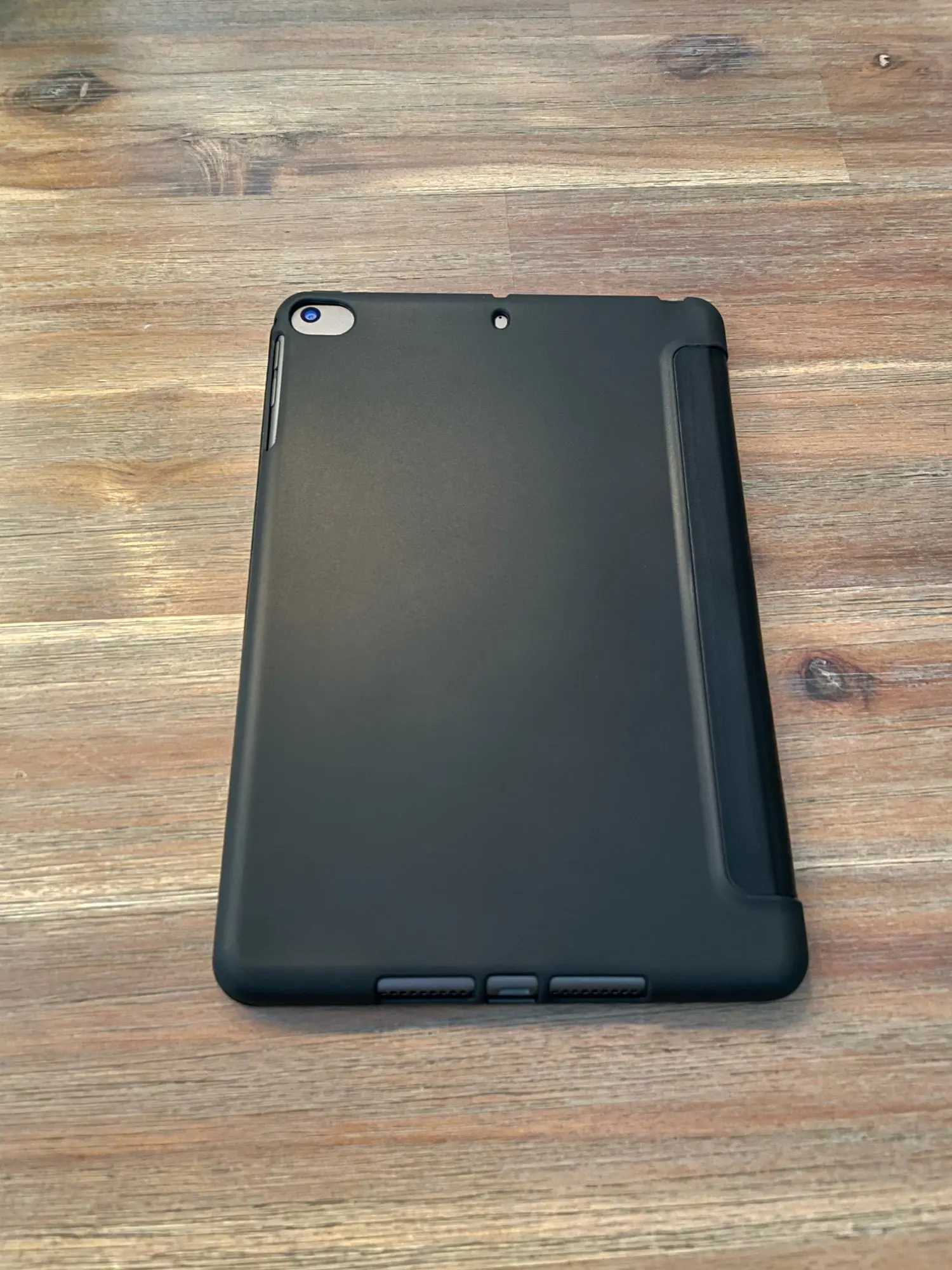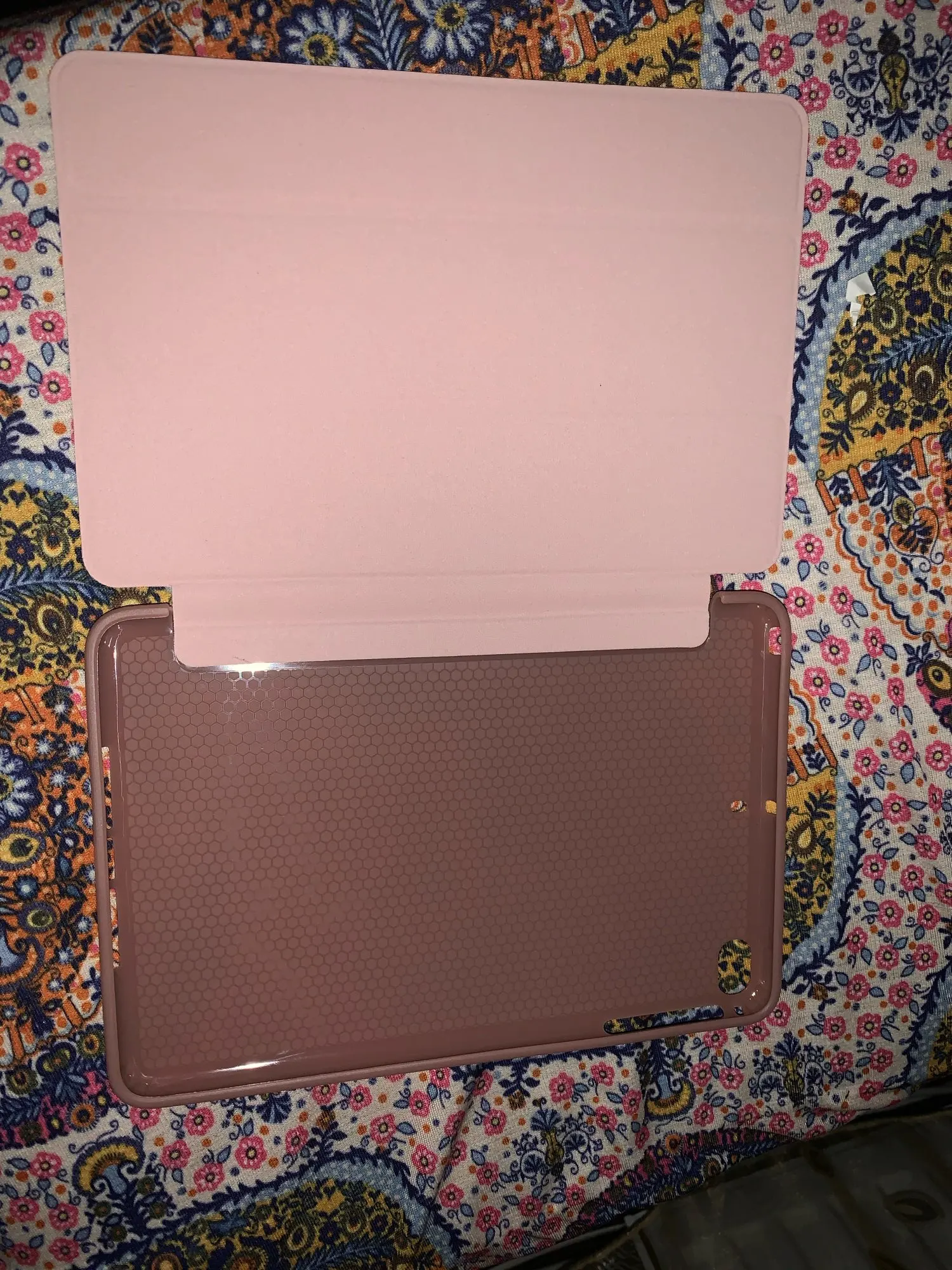 Чехол хорошо подошёл к айпаду мини 4. Задняя крышка силиконовая. Есть дефект на верхней крышке - порез на торце.