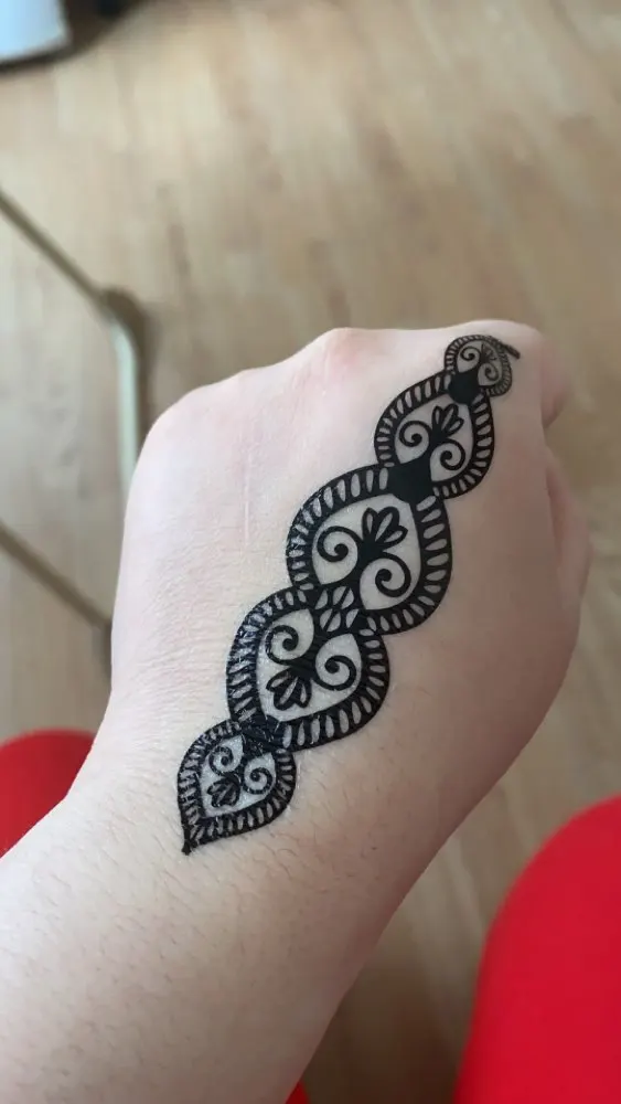 Модные черные цепочки, цветы хны на запястье, искусственные татуировки, наклейки, водостойкая мандала, цветная татуировка, временные женские руки, 3D тату