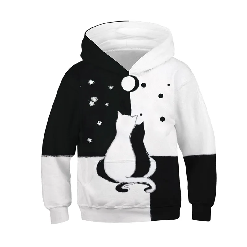Свитер для мальчиков и девочек; Детские толстовки с капюшоном с 3D-принтом галактики; Толстовки для девочек; Весенняя одежда; Милые свободные пуловеры с изображением кота; Moleton Infantil