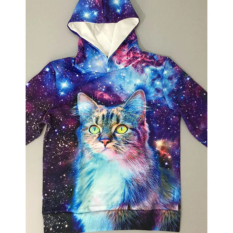 худи для девочек Свитер для мальчиков и детские толстовка для девочки с капюшоном с объемным принтом галактики; Одежда для девочек; осенние свободные пуловеры с милым котом; одежда для детей
