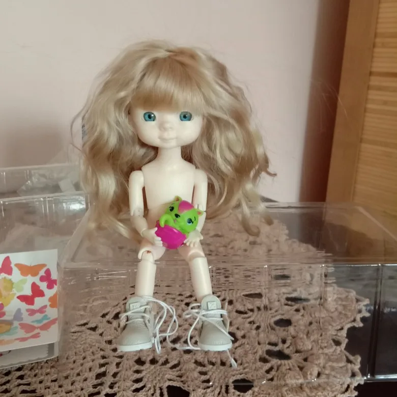 Размеры куклы Дженни: высота: 17 см Окружность головы: 14,см окружность шеи: 4 см плечо: 4,5 см Обхват груди: 8 см обхват талии: 7,20 см обхват бедер: 8 см длина руки: 4,3 см длина стопы: 2 см