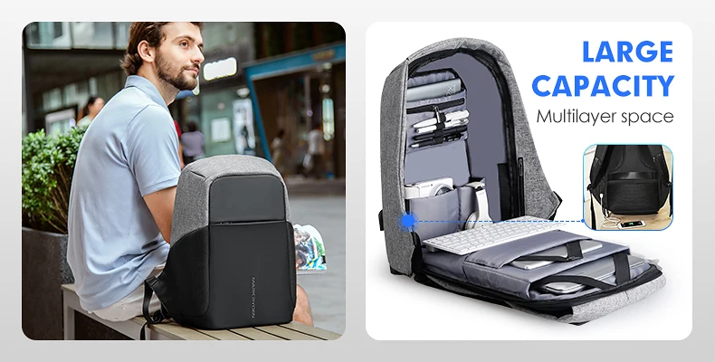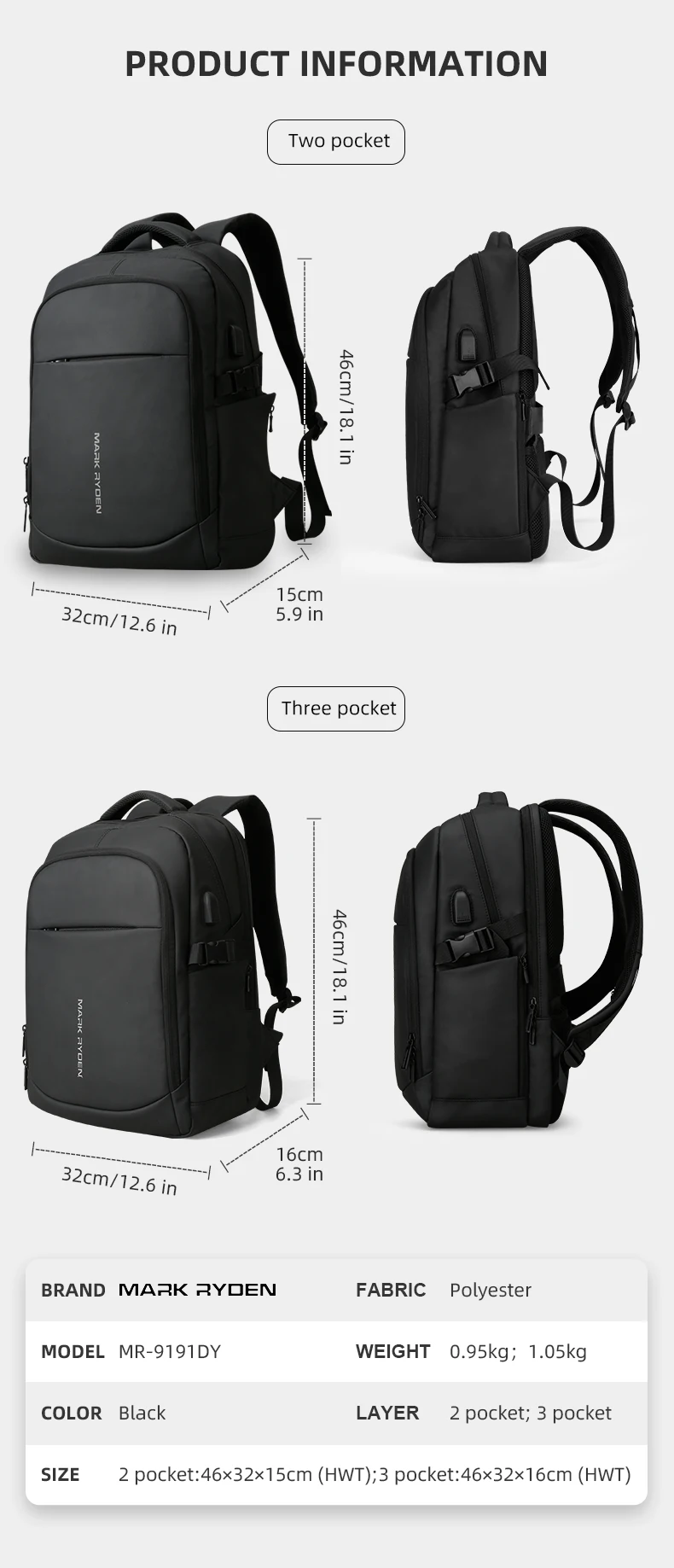 Мужской рюкзак Mark Ryden, многофункциональный, водонепроницаемый, для ноутбука 2021 дюймов, с несколькими отделениями, с USB-портом