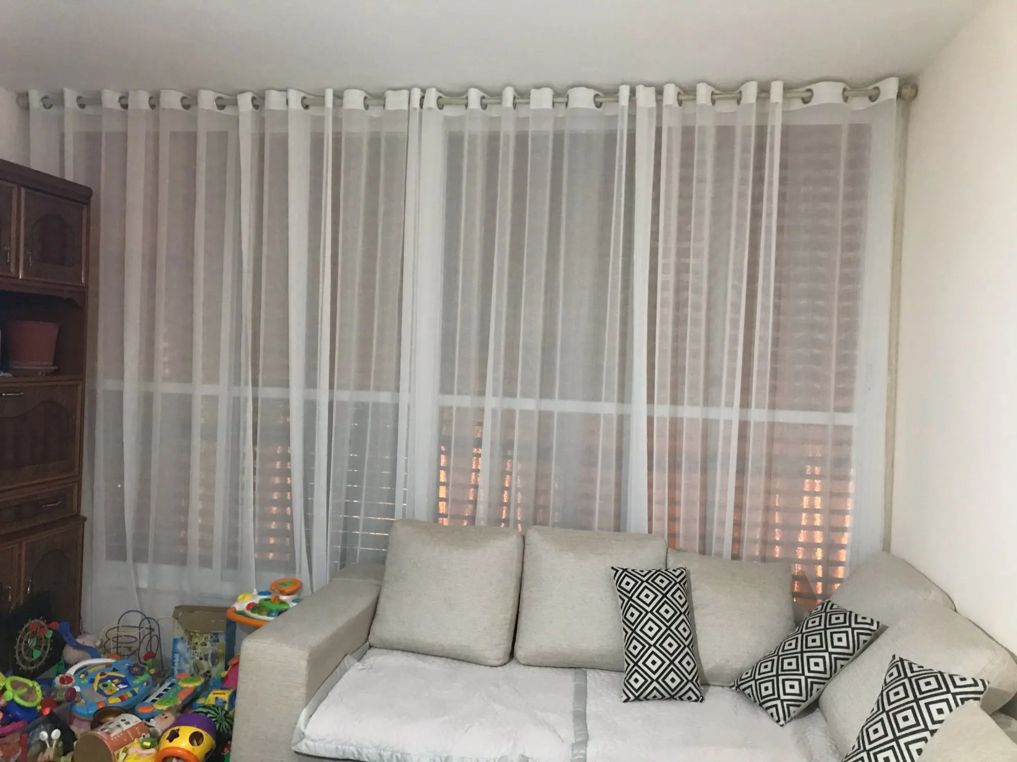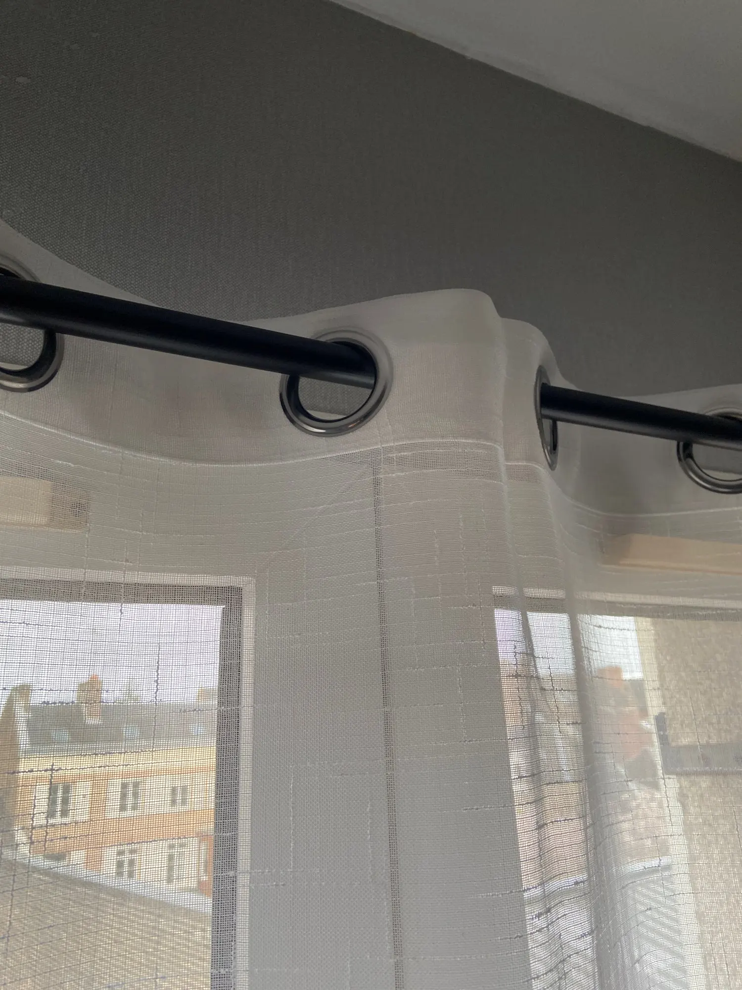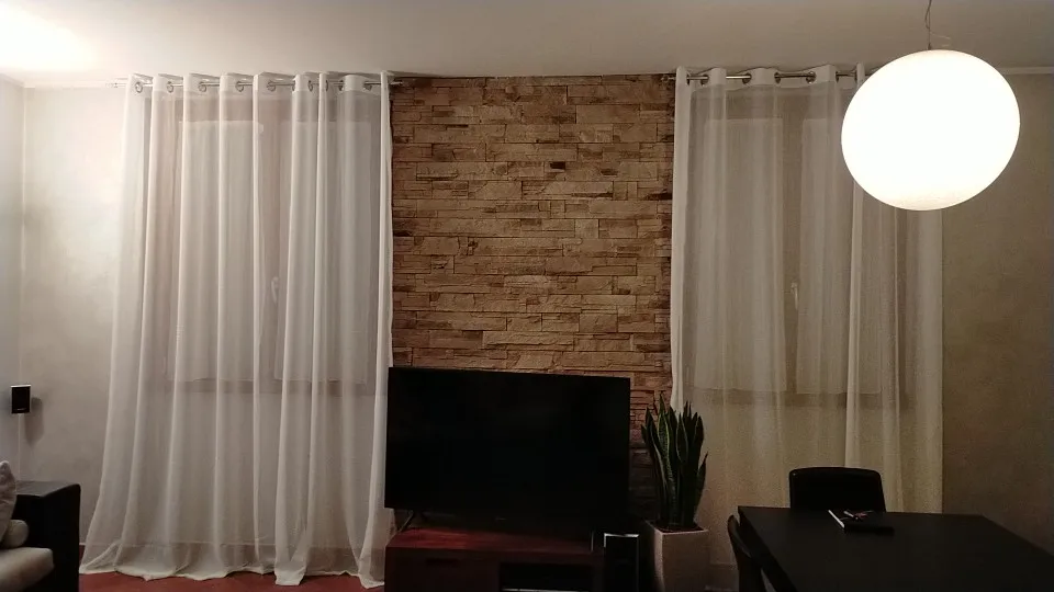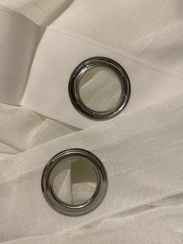 Все как описано, очень красиво, элегантно. Пропускает свет, ткань мягкая. Я сделал два, один идеален, другой имеет дефекты там, где они создали люверсы, но им удалось их сшить. Тем не менее, consilliatissima.