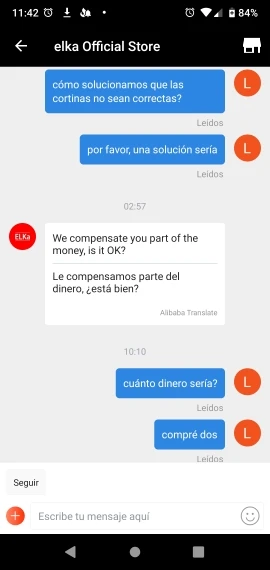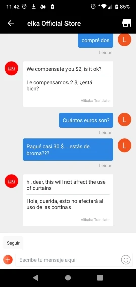 Следите за этим продуктом! Я сообщу вам свой опыт: я покупаю две занавески, и когда я вешу их, я вижу, как две занавески были короче по углам. Я сообщу магазину, я отправлю вам несколько фотографий и прошу решение: отправьте мне другую пару штор или дайте мне деньги полностью. Они дают мне много времени, они говорят мне, что шторы хорошие, это нормально. Я снова прошу их о серьезном решении, и они говорят мне, что они дают мне 2 доллара назад.!. (Занавески стоят мне $30!). Я сообщу вам, что вы сомневаетесь в мне, и я снова прошу вас о когерентном решении. Вы больше не поворачиваете меня. Чтобы ответить. Я прилагаю вам фотографии штор и разговора.