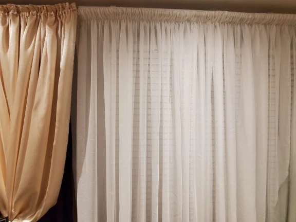 Товаром вполне доволен, НО! Заказал два куска как в прайсе у продавца, в итоге он мне выслал один кусок на 6 метров, пришлось вешать так, потом обрежу, Ткань очень нежная в плане стирок и глажки, при отпаривании в одном месте затянул как женские колготки, после стирки все складки проявились! складки получилось разровнять отпаривателем! Спор не открывал да фиг с ним. думаю стоит этих денег. The product is quite happy, BUT! Ordered two pieces in price from the seller, in the end he sent me one piece of 6 meters, so I had to hang, then cut, the Fabric is very delicate in terms of washing and Ironing, with steam in one place cinched as women's pantyhose, after washing all the creases show! the creases turned out to be leveled with a steamer! The dispute did not open Yes figs with him. I think it is worth the money.