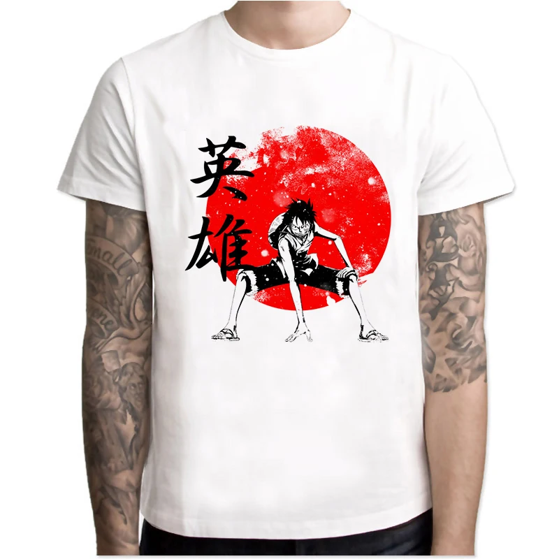 Футболка с изображением японского аниме, цельный топ с коротким рукавом, одежда для мужчин, Луффи