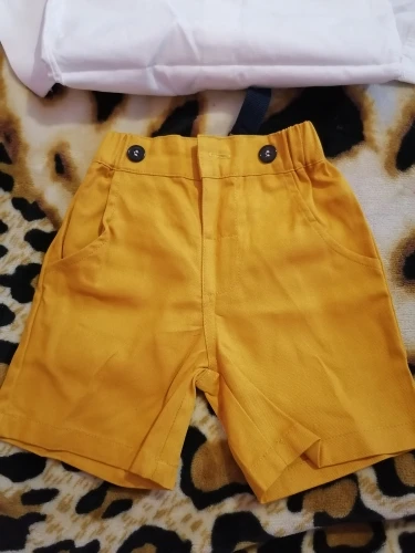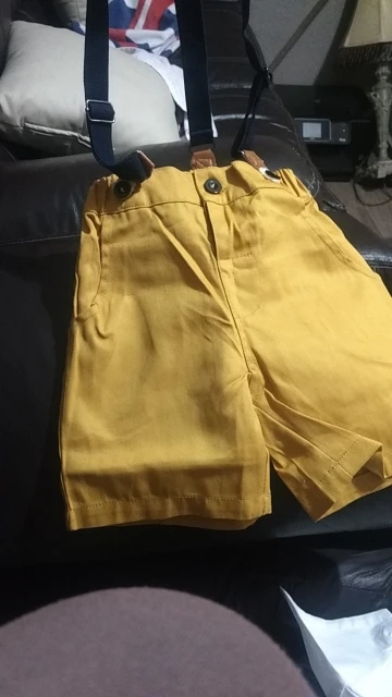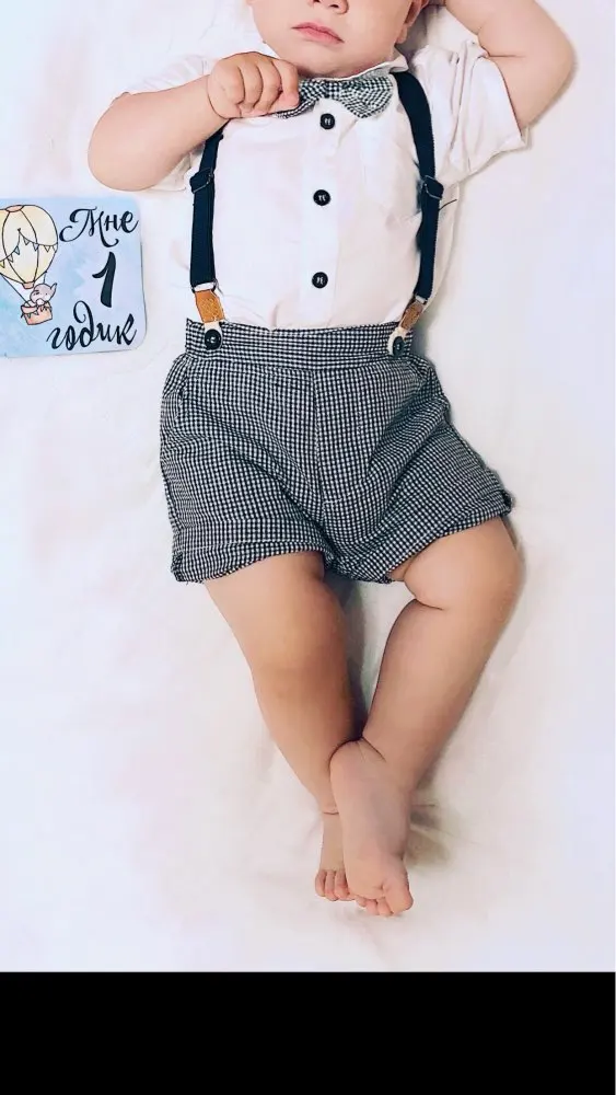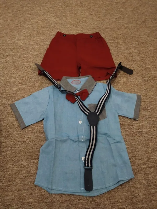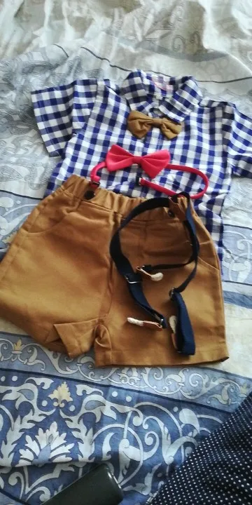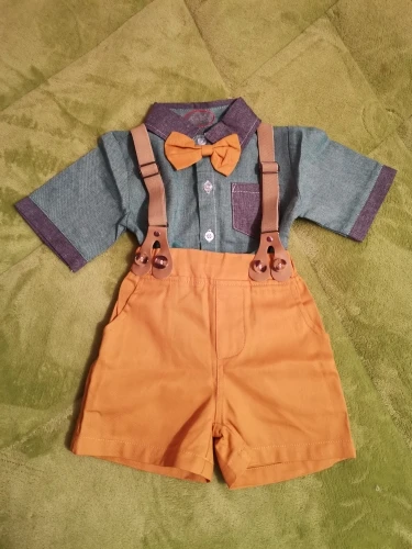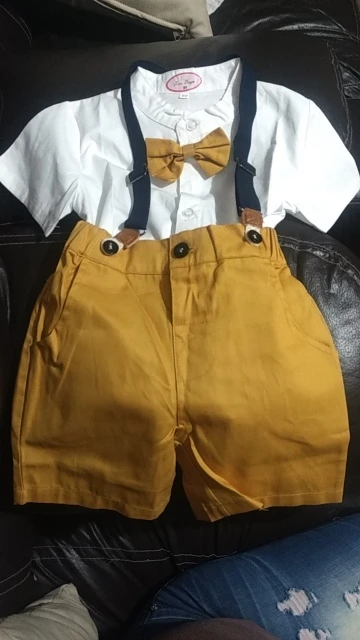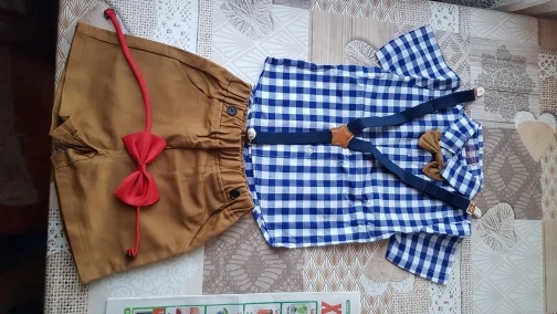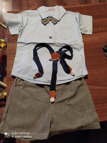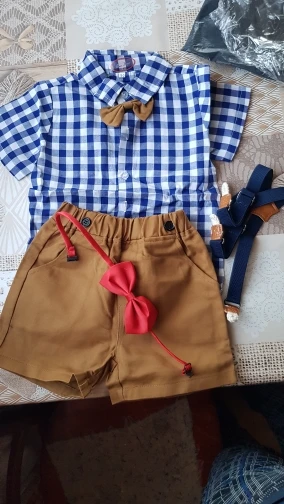 Заказывала комплект из шортиков и рубашки с короткими рукавами, а по факту пришли брюки с рубашкой с длинными рукавами, за это лишь убрала звезду, так как искала на др именно шорты, но качество супер и очень быстро костюм пришел