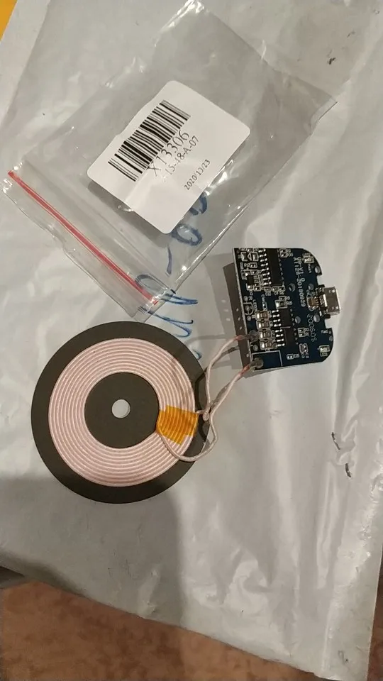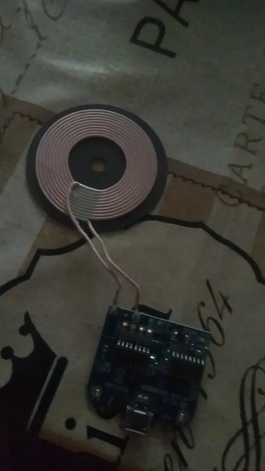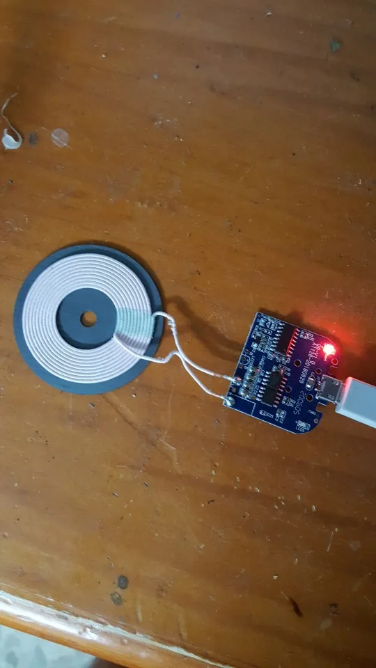 Как на фото. Катушка постоянно подключается к монтажной плате и постоянно соединяется с защитным/несущим диском длиной около 4 см. Два светодиода, два 8-контактный IC и один 16-контактный IC