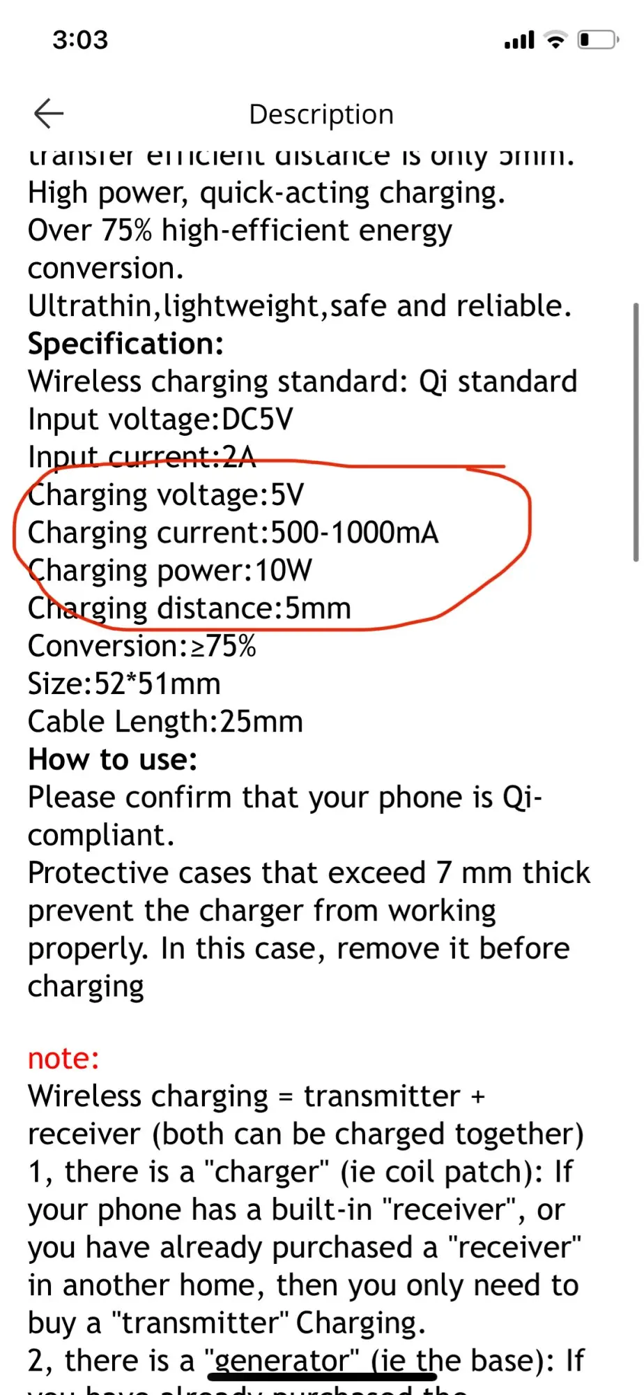 Это рекламируется как Qi Беспроводное зарядное устройство, на самом деле это убило мой новый iPhone 11 pro бессонный модуль, так что это не Qi. Более того, в описании указано, что он выводит 5 В и Диапазон тока от 500 до 1000 мА (прилагается скриншот), на самом деле он выводит максимум 800 мА, но напряжение падает до 2,32 в, как указано ниже 5 В (скриншоты от измерений прилагаются). С этими характеристиками это зарядное устройство является просто ломом. Не заряжайте свой iPhone, он повредит его, как он это сделал со мной. Мне вернули деньги