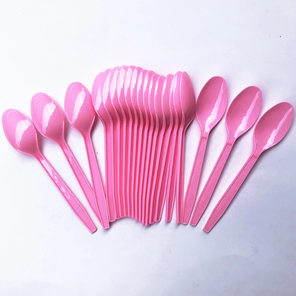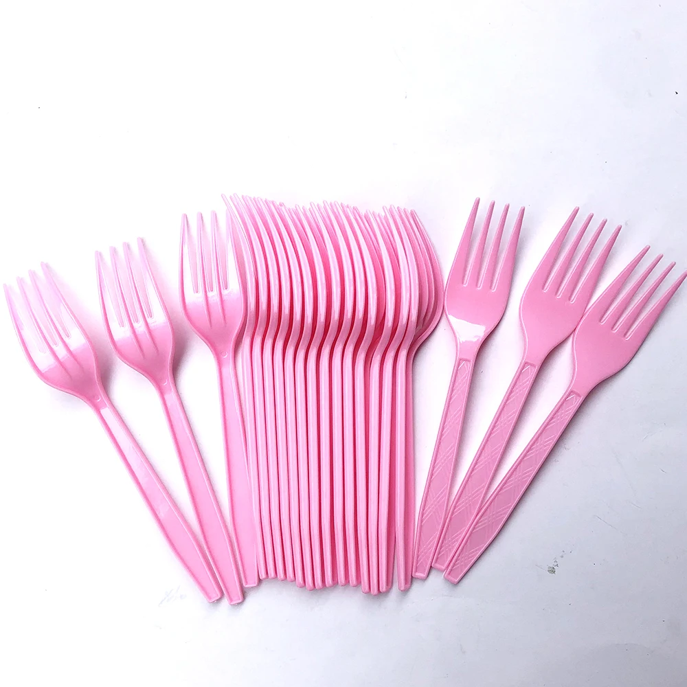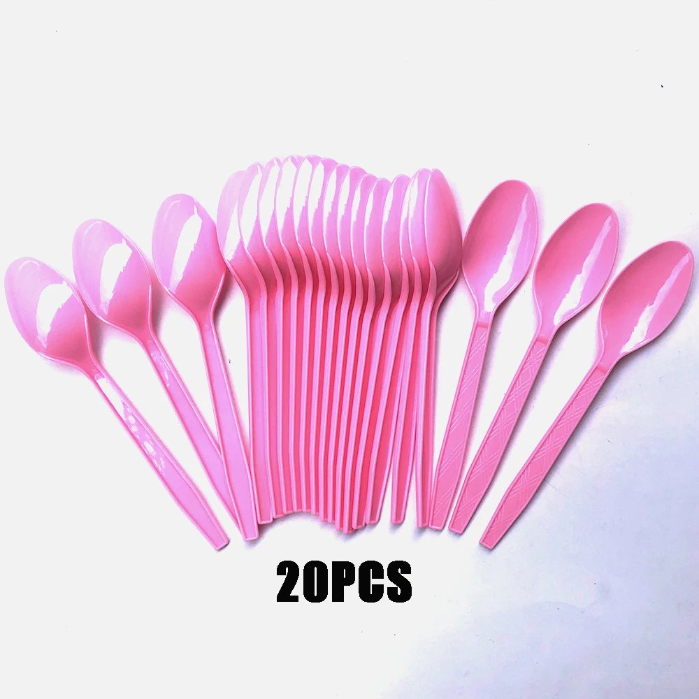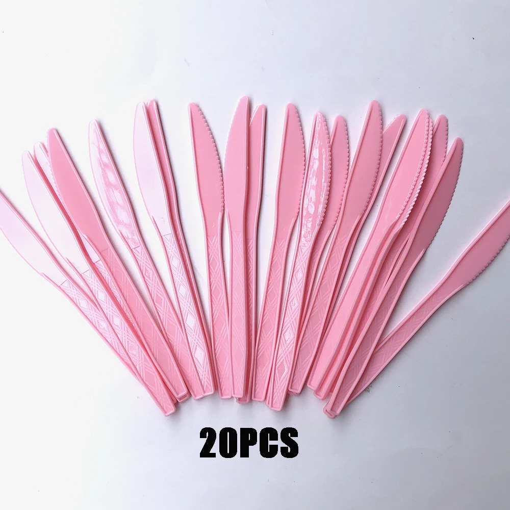 20 шт., розовая сверхпрочная пластиковая посуда, одноразовые столовые приборы, нож, вилка, ложка, инструменты для дня рождения, товары для вечеринок