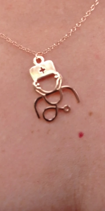 bigger then I thought so it looks odd and its not wearable because the hoop in the stethoscope is way too big and the heart (end of the necklace) falls right through